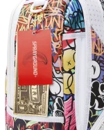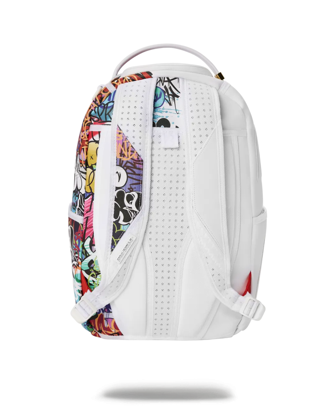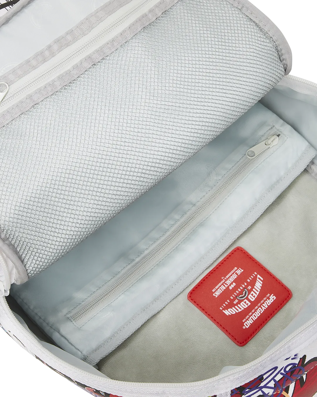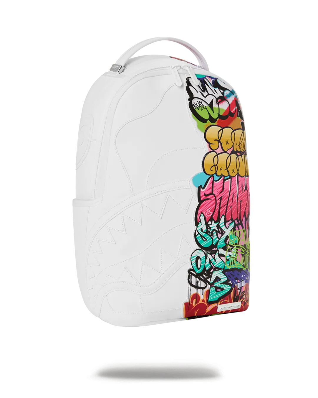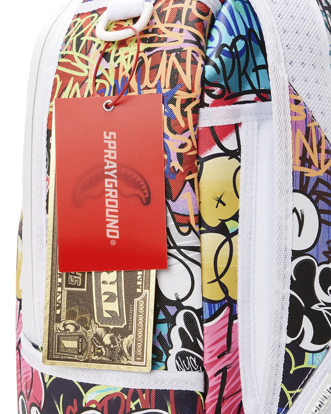 Dimensions: 18″ x 6″ x 11.5″ ? Front zipper pocket ? Side pockets ? Zippered Stash pocket ? Separate velour sunglass compartment ? Ergonomic mesh back padding ? Adjustable Straps for custom sizing ? Gold zippers with metal hardware ? Metal “Sprayground Authentic” badge ? Slide through back sleeve connects to carry-on luggage to free your hands