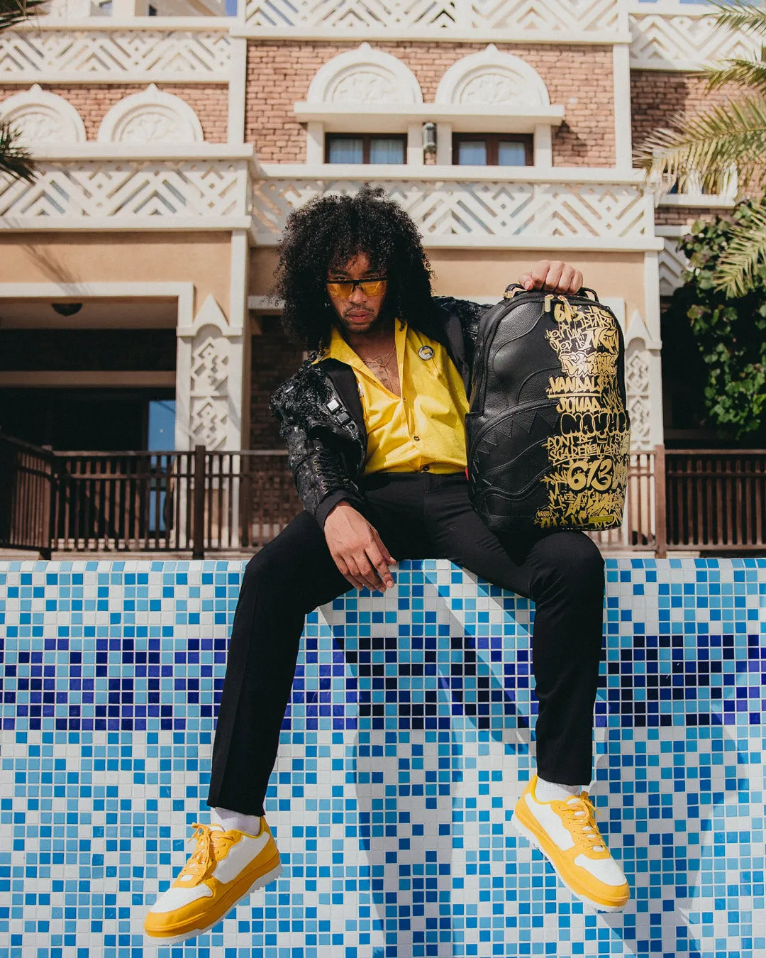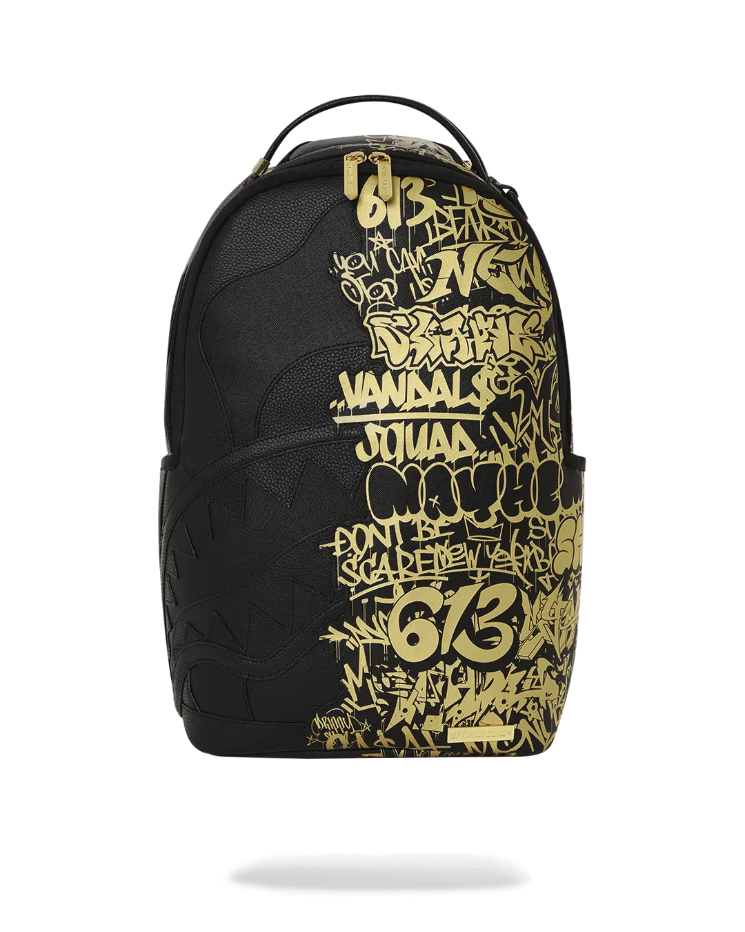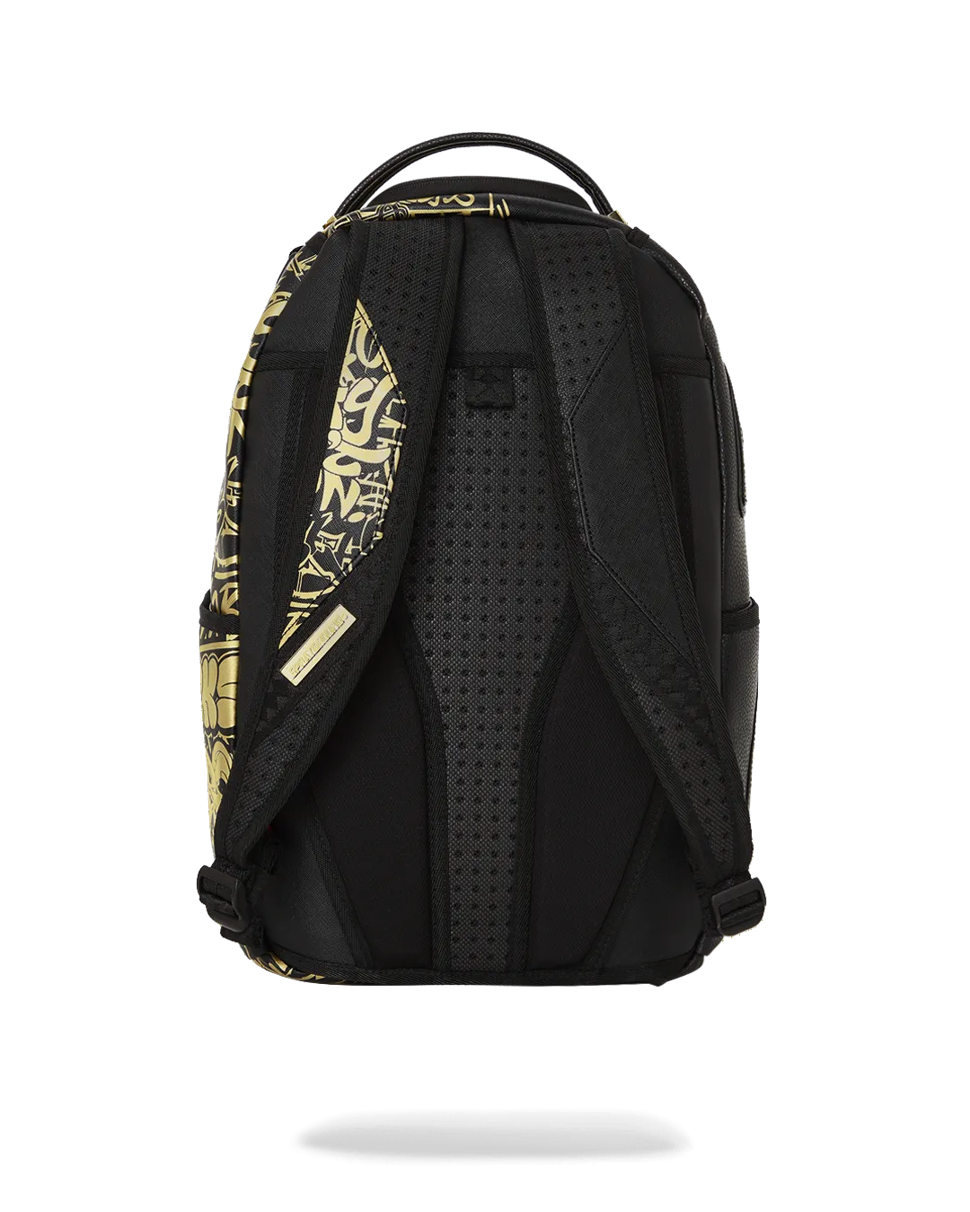 Dimensions: 18″ x 6″ x 11.5″ ? Front zipper pocket ? Side pockets ? Zippered Stash pocket ? Separate velour sunglass compartment ? Ergonomic mesh back padding ? Adjustable Straps for custom sizing ? Gold zippers with metal hardware ? Metal “Sprayground Authentic” badge ? Slide through back sleeve connects to carry-on luggage to free your hands
