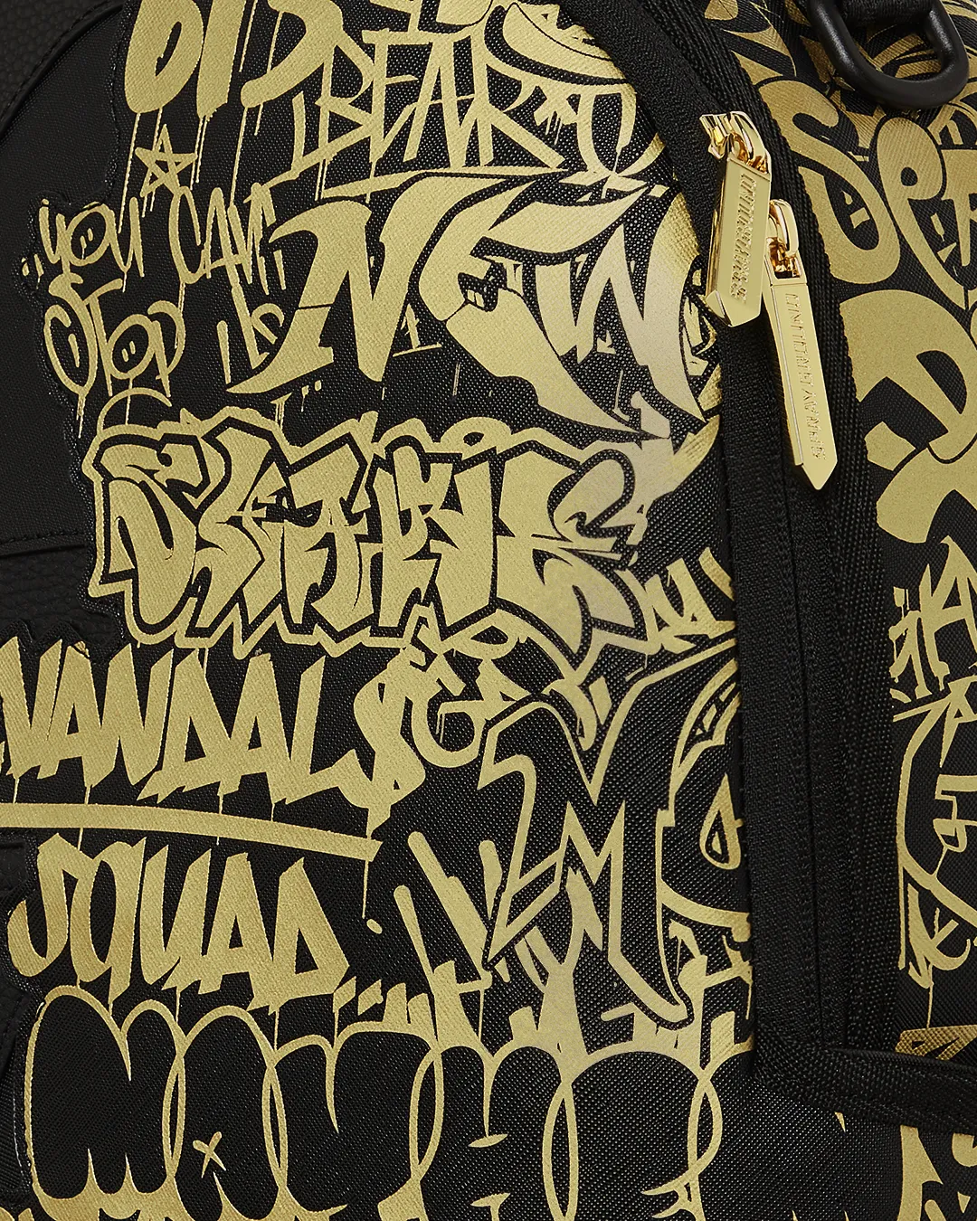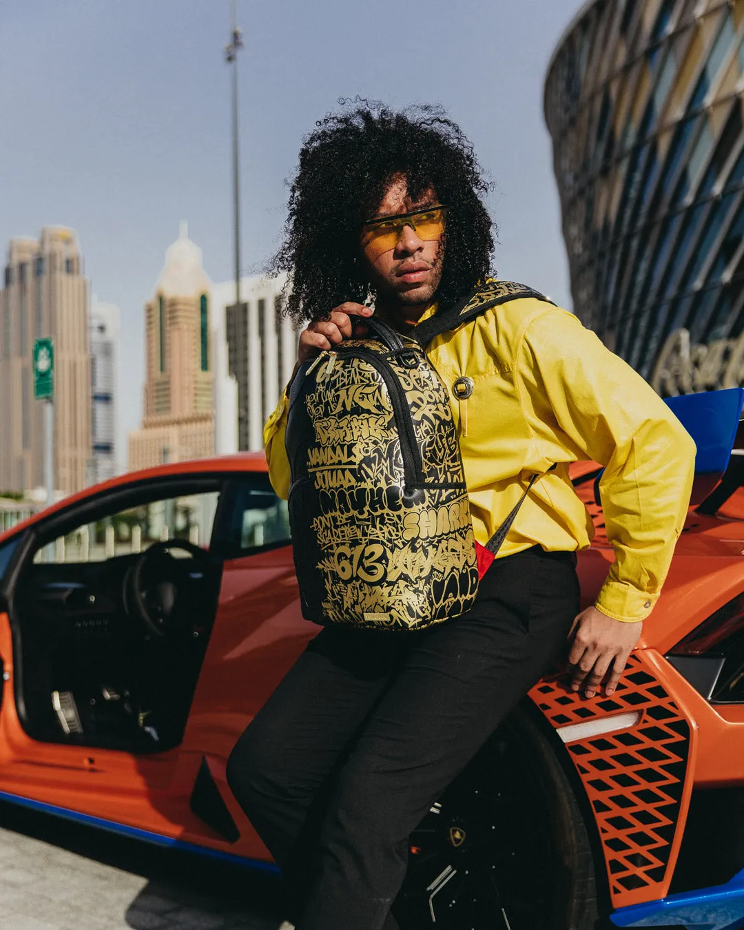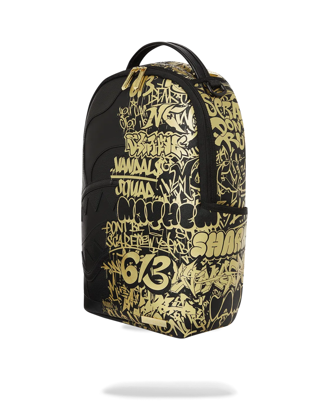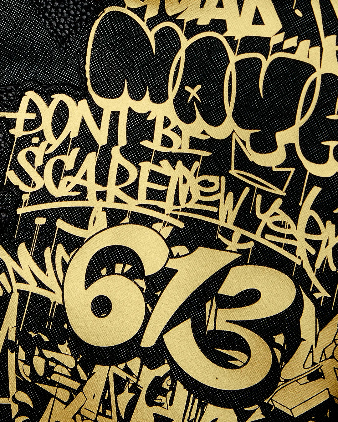 Dimensions: 18″ x 6″ x 11.5″ ? Front zipper pocket ? Side pockets ? Zippered Stash pocket ? Separate velour sunglass compartment ? Ergonomic mesh back padding ? Adjustable Straps for custom sizing ? Gold zippers with metal hardware ? Metal “Sprayground Authentic” badge ? Slide through back sleeve connects to carry-on luggage to free your hands