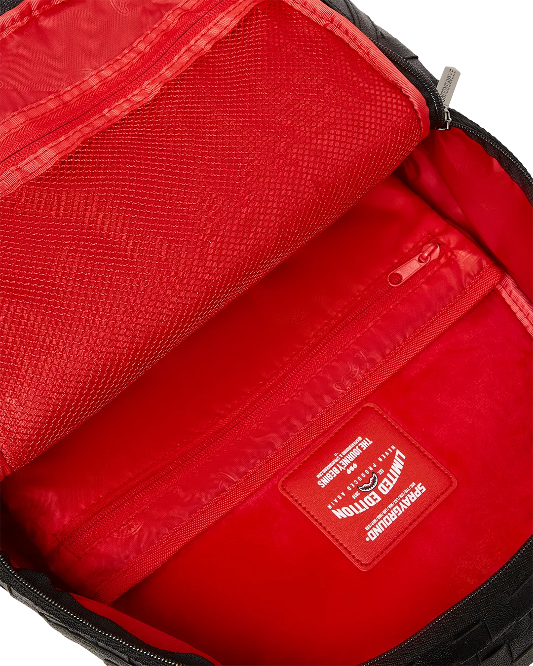 Dimensions: 18″ x 6″ x 11.5″ ? Front zipper pocket ? Side pockets ? Zippered Stash pocket ? Separate velour sunglass compartment ? Ergonomic mesh back padding ? Adjustable Straps for custom sizing ? Gold zippers with metal hardware ? Metal “Sprayground Authentic” badge ? Slide through back sleeve connects to carry-on luggage to free your hands