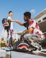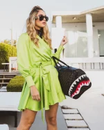 Dimensions: 20″ x 10″ x 10.75″ ? Metal zipper pocket??Back Zippers ?Zippered sneaker pocket ? gold zippers ? Adjustable Straps for custom sizing ?Metal Zippers with Metal Hardware ? bag of Sprayground money