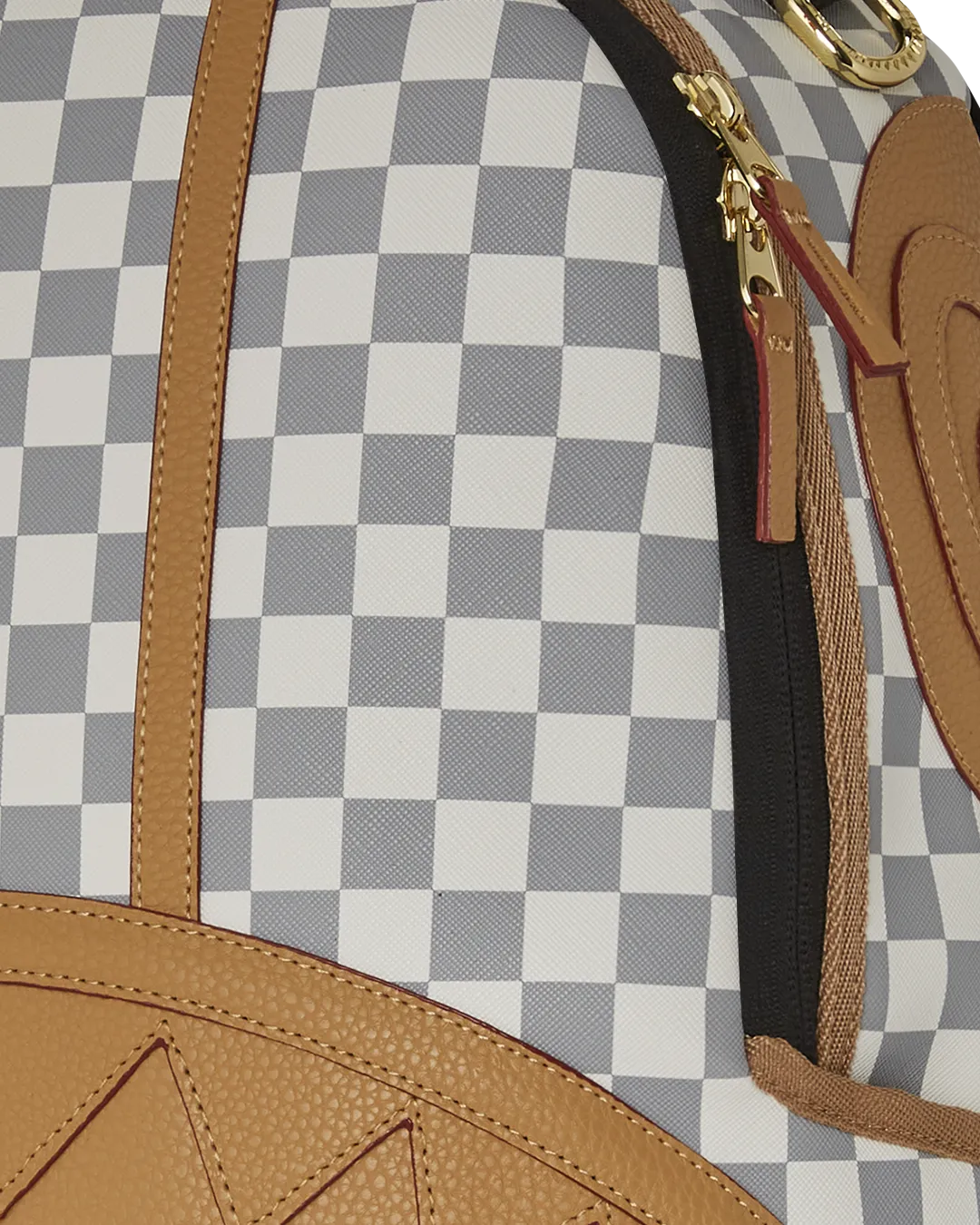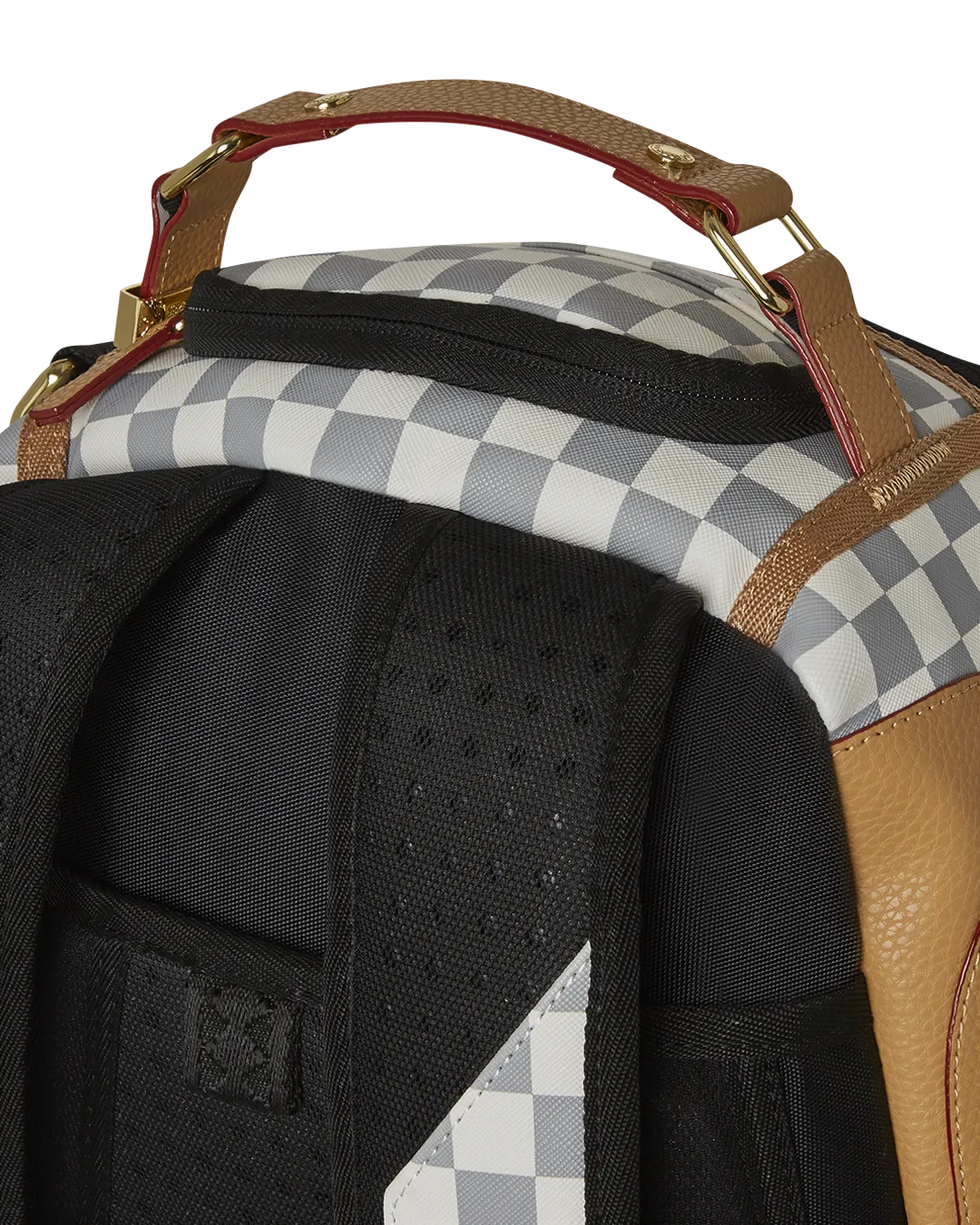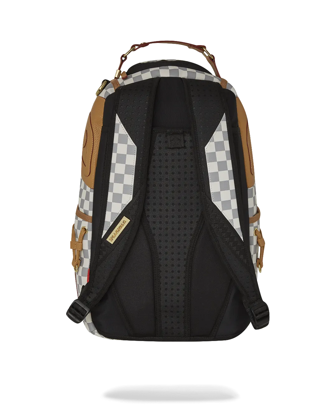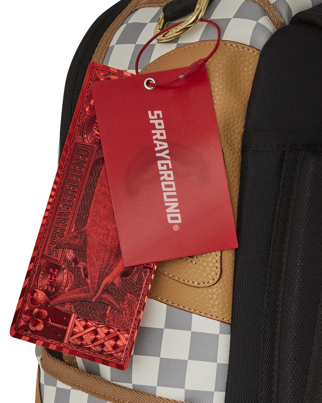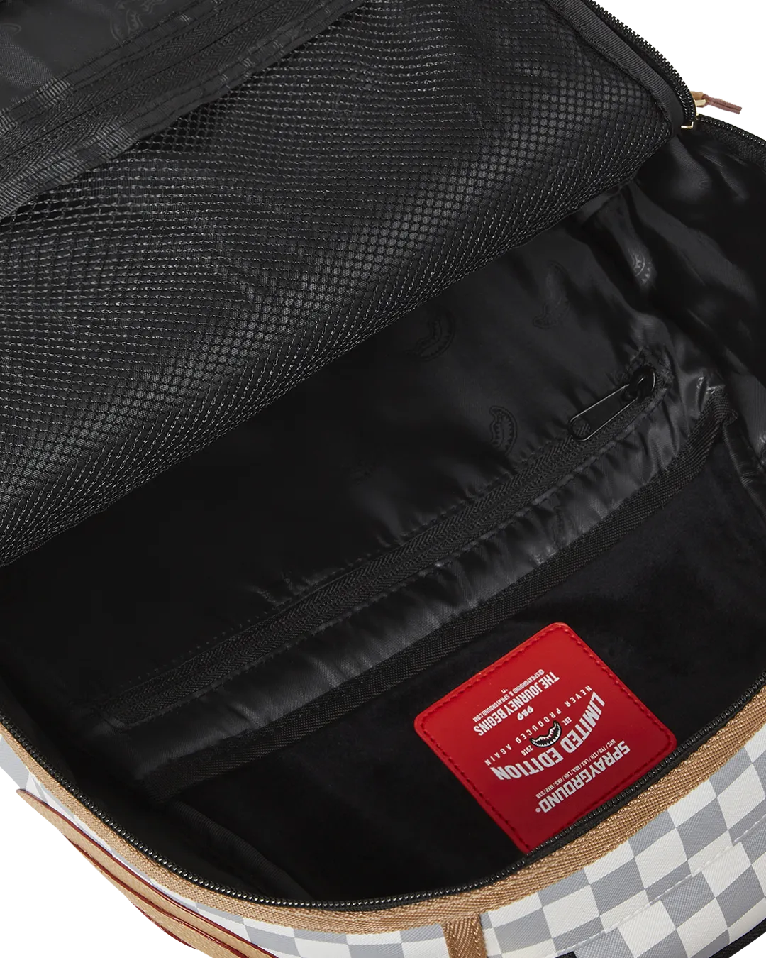 Dimensions: 18″ x 6″ x 11.5″ ? Front zipper pocket ? Side pockets ? Zippered Stash pocket ? Separate velour sunglass compartment ? Ergonomic mesh back padding ? Adjustable Straps for custom sizing ? Gold zippers with metal hardware ? Metal “Sprayground Authentic” badge ? Slide through back sleeve connects to carry-on luggage to free your hands