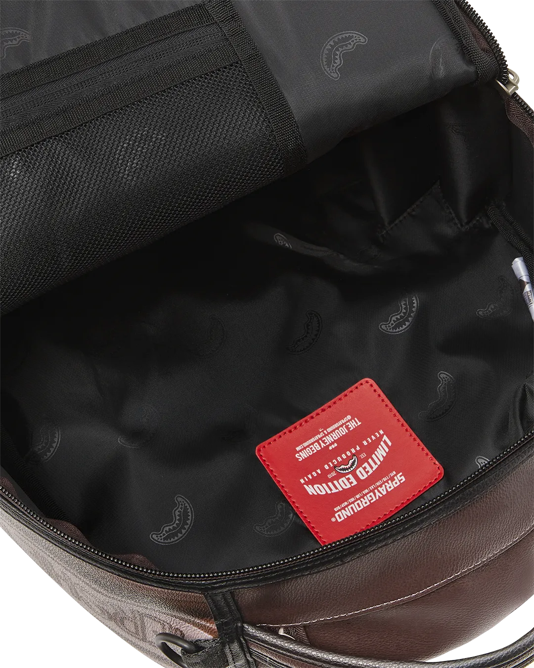 Dimensions: 18″ x 6″ x 11.5″ ? Front zipper pocket ? Side pockets ? Zippered Stash pocket ? Separate velour sunglass compartment ? Ergonomic mesh back padding ? Adjustable Straps for custom sizing ? Gold zippers with metal hardware ? Metal “Sprayground Authentic” badge ? Slide through back sleeve connects to carry-on luggage to free your hands