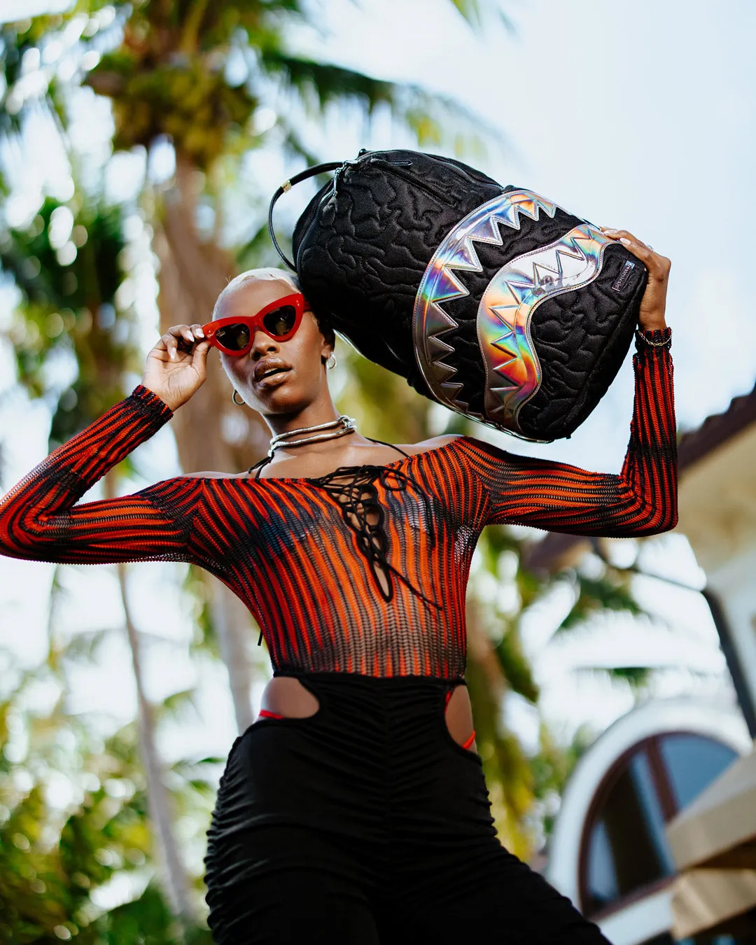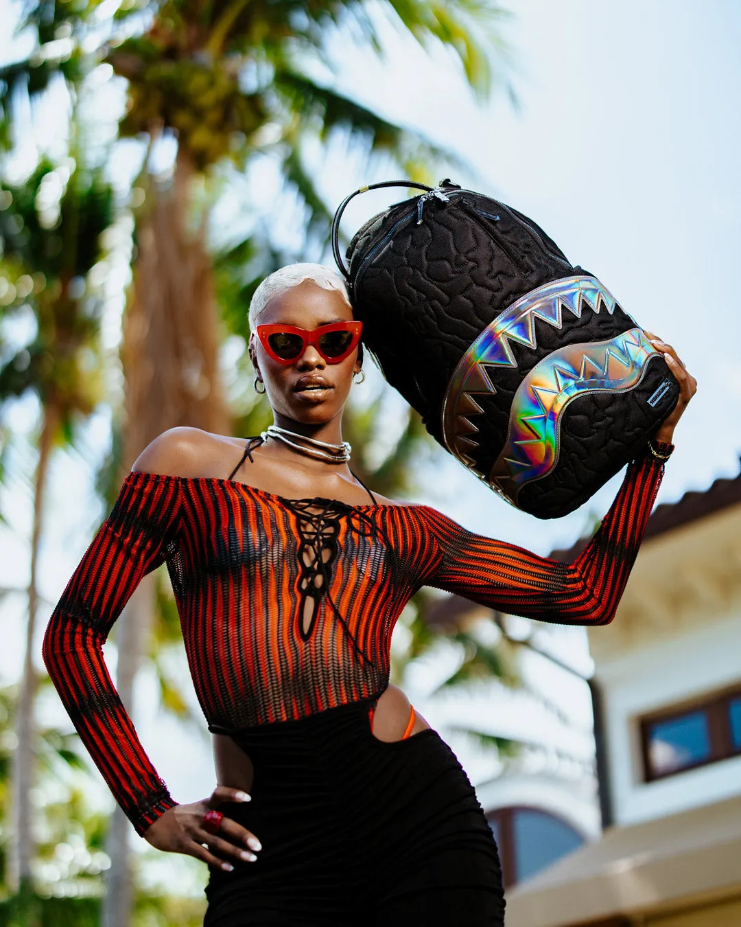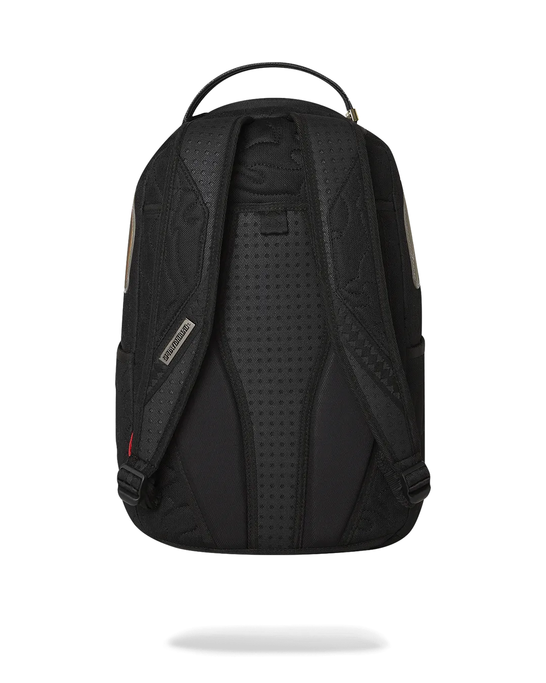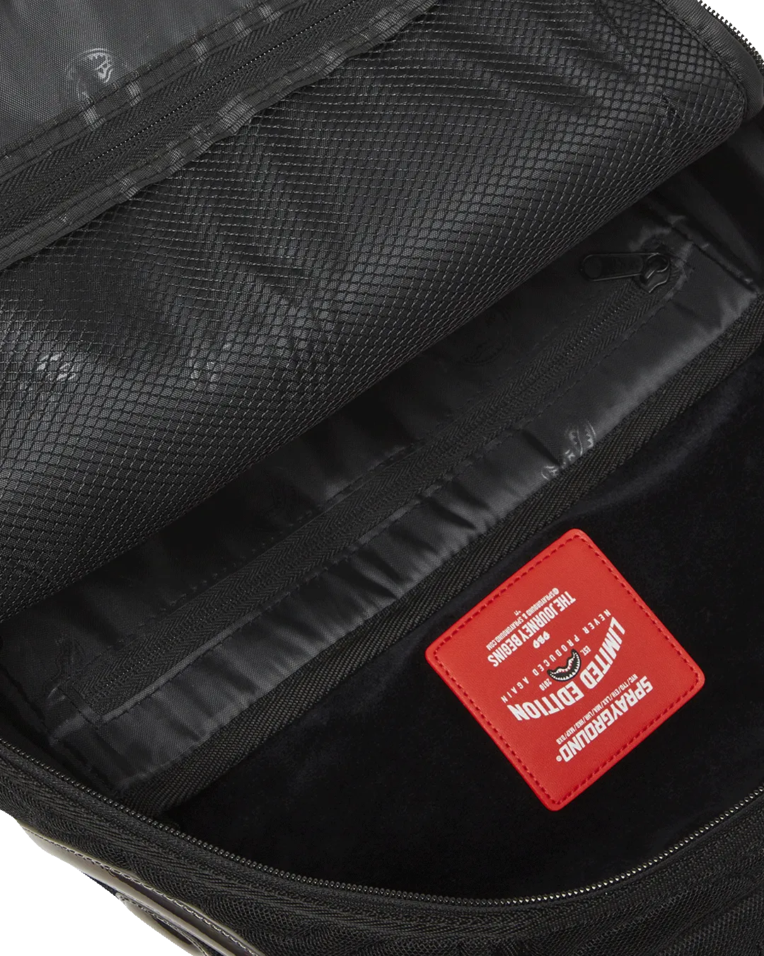 Dimensions: 18″ x 6″ x 11.5″ ? Front zipper pocket ? Side pockets ? Zippered Stash pocket ? Separate velour sunglass compartment ? Ergonomic mesh back padding ? Adjustable Straps for custom sizing ? Gold zippers with metal hardware ? Metal “Sprayground Authentic” badge ? Slide through back sleeve connects to carry-on luggage to free your hands