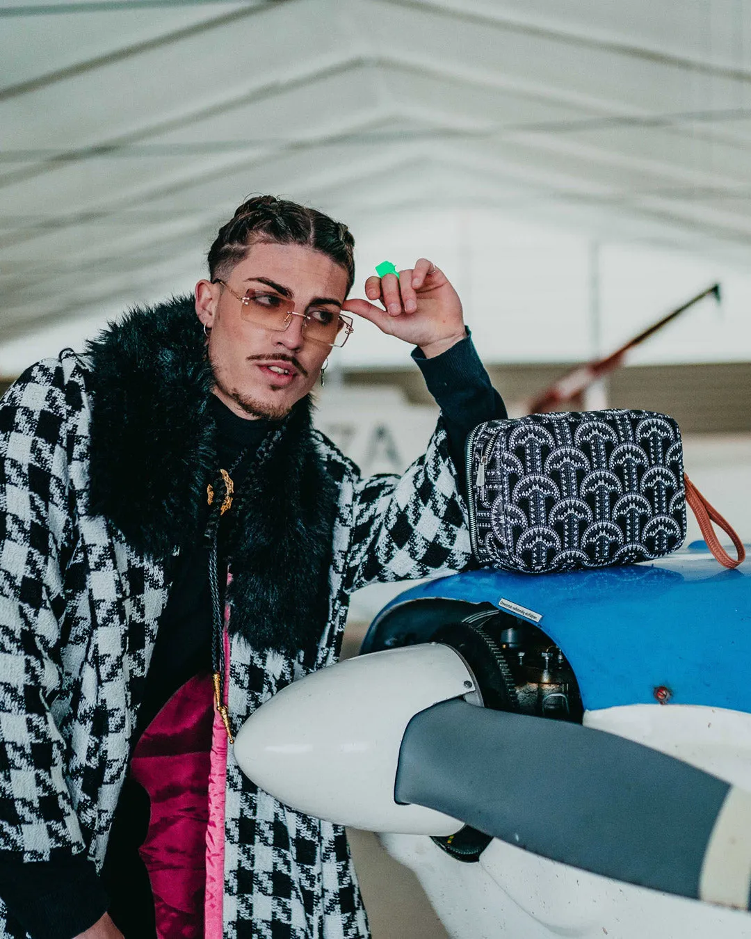 Dimensions: 10″ x 3.25″ x 8″ ? Two zippered compartments ? Side handle ? Gunmetal zippers with metal hardware