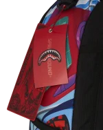 Dimensions: 18″ x 6″ x 11.5″ ? Front zipper pocket ? Side pockets ? Zippered Stash pocket ? Separate velour sunglass compartment ? Ergonomic mesh back padding ? Adjustable Straps for custom sizing ? Gold zippers with metal hardware ? Metal “Sprayground Authentic” badge ? Slide through back sleeve connects to carry-on luggage to free your hands
