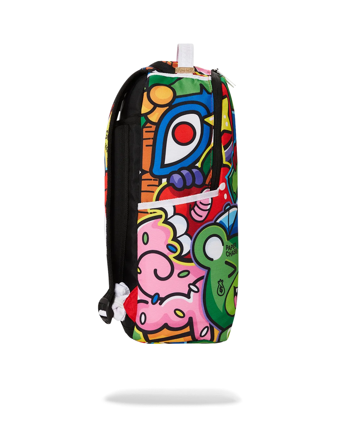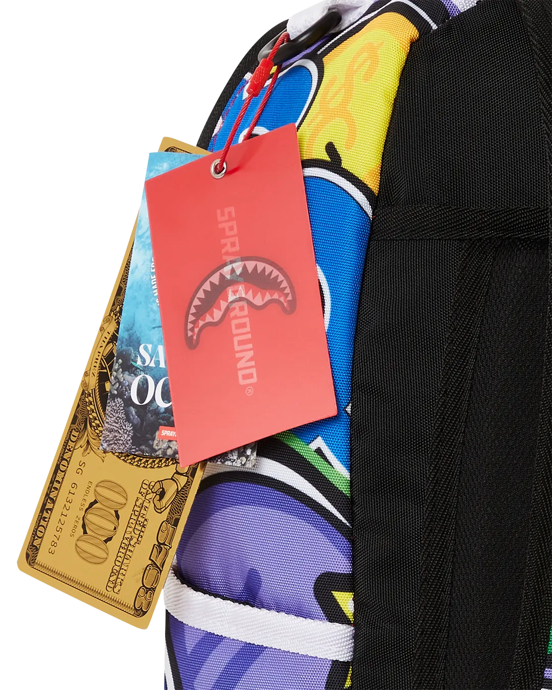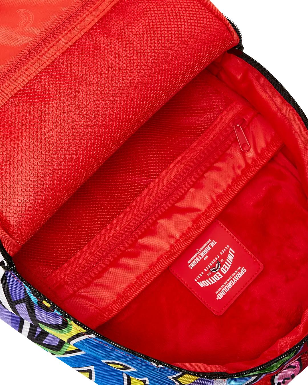 Dimensions: 18″ x 6″ x 11.5″ ? Front zipper pocket ? Side pockets ? Zippered Stash pocket ? Separate velour sunglass compartment ? Ergonomic mesh back padding ? Adjustable Straps for custom sizing ? Gold zippers with metal hardware ? Metal “Sprayground Authentic” badge ? Slide through back sleeve connects to carry-on luggage to free your hands