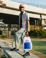 Dimensions: 18″ x 6″ x 11.5″ ? Front zipper pocket ? Side pockets ? Zippered Stash pocket ? Separate velour sunglass compartment ? Ergonomic mesh back padding ? Adjustable Straps for custom sizing ? Gold zippers with metal hardware ? Metal “Sprayground Authentic” badge ? Slide through back sleeve connects to carry-on luggage to free your hands