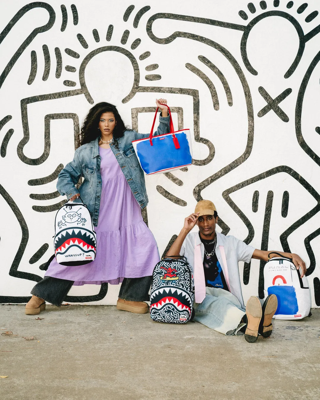KEITH HARING BIG BLUE PURSE ART BACKPACK
