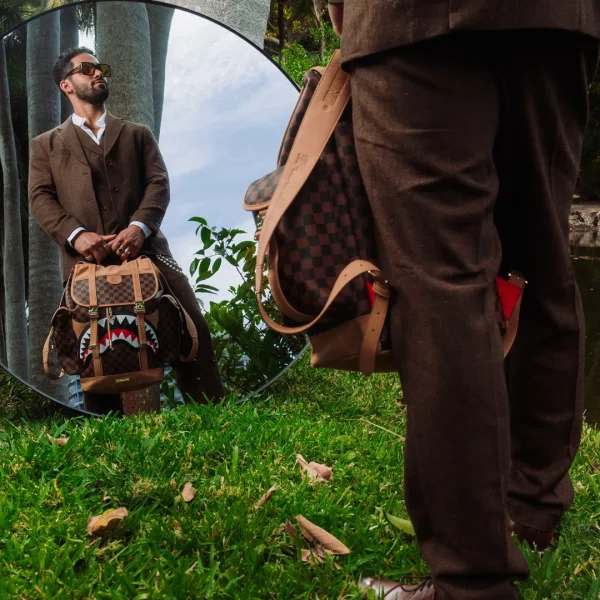 Dimensions: 18″ x 6″ x 11.5″ ? Front zipper pocket ? Side pockets ? Zippered Stash pocket ? Separate velour sunglass compartment ? Ergonomic mesh back padding ? Adjustable Straps for custom sizing ? Gold zippers with metal hardware ? Metal “Sprayground Authentic” badge ? Slide through back sleeve connects to carry-on luggage to free your hands