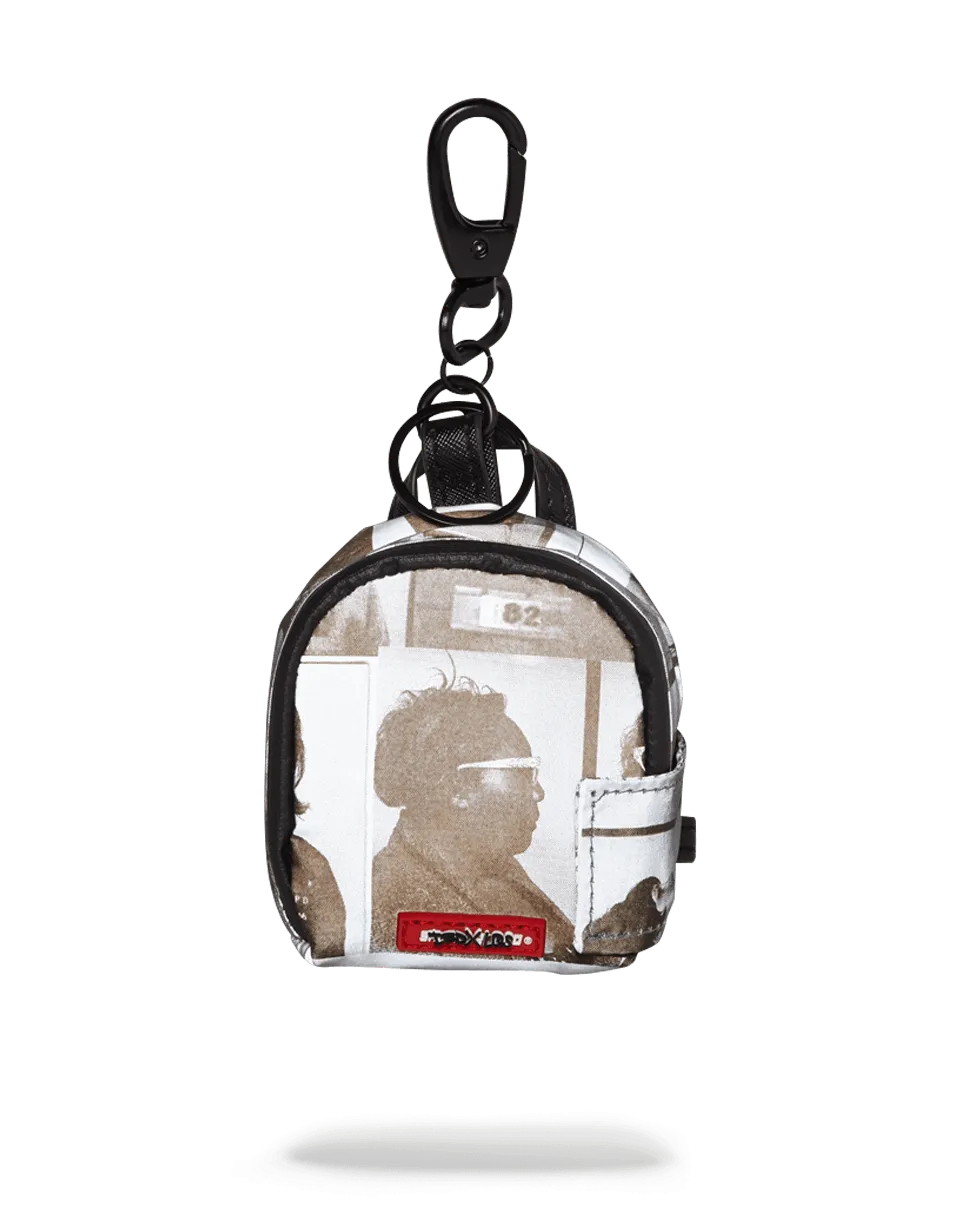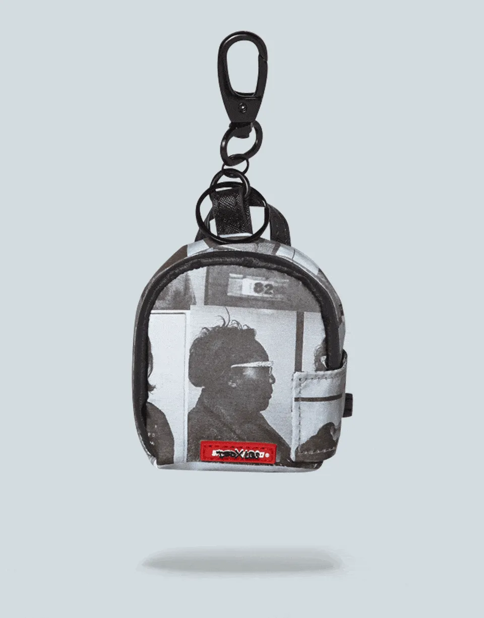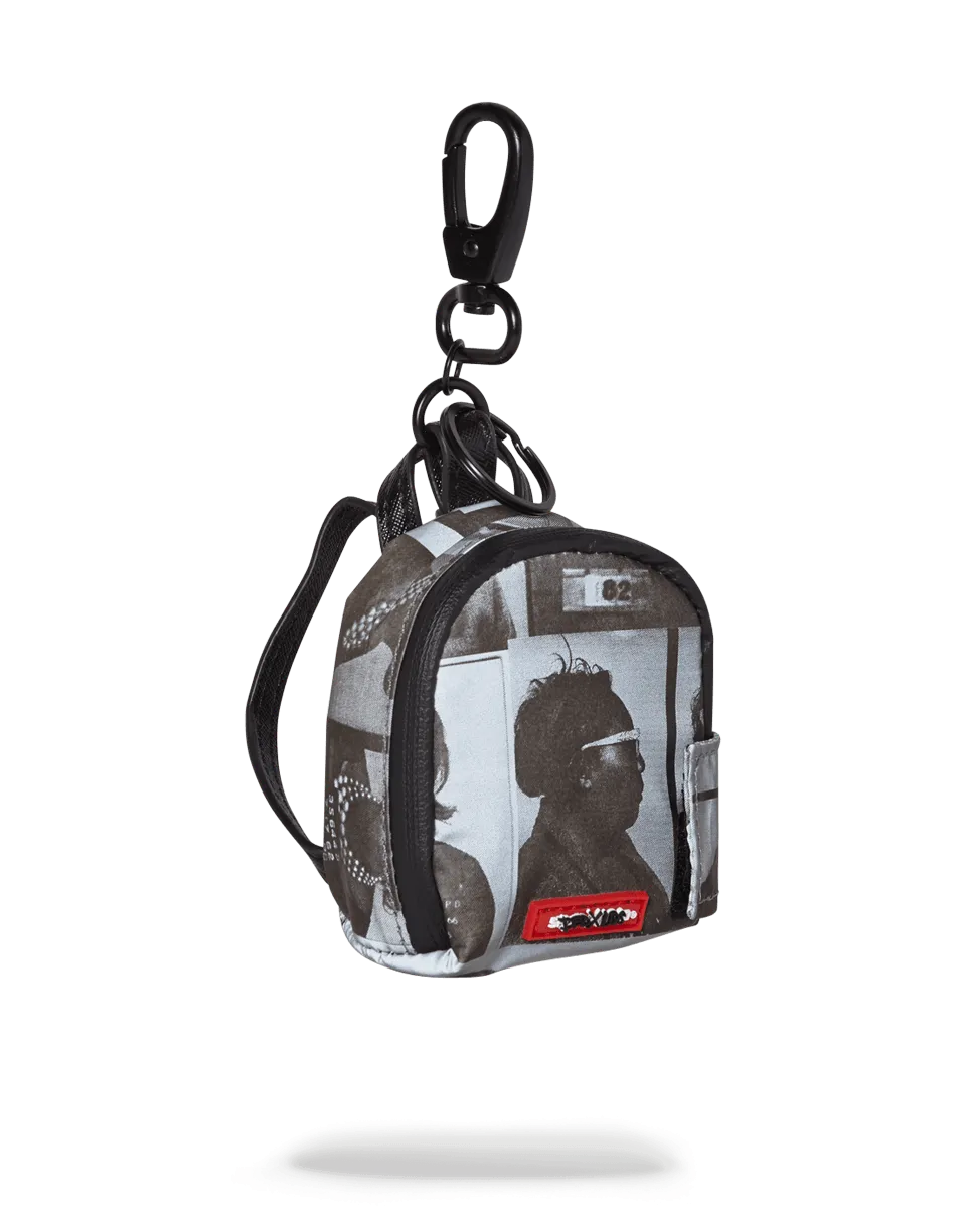 3M reflective backpack keychain from LQS x DBD Collaboration?for Scammer Collection. Featuring black and white printed mugshots of powerful women convicted for crimes throughout history.