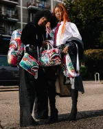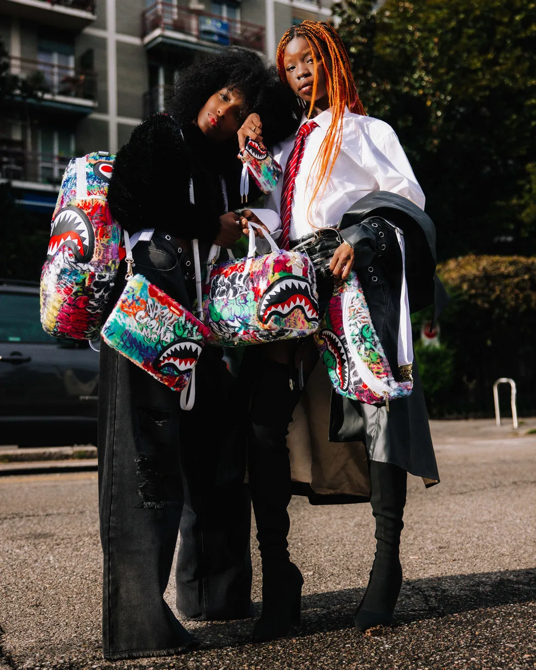 Plush faux fur fabric printed with iconic sprayground graffiti?