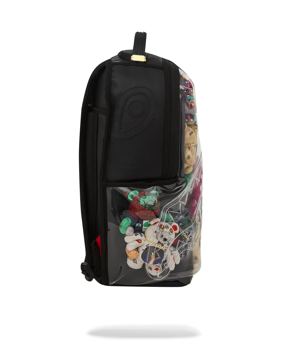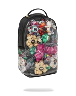 Guess how many mini bears we can fit in a backpack?? Fully functional DLX backpack stuffed with over 18 miniature bears behind a clear PVC cut and sew mouth.