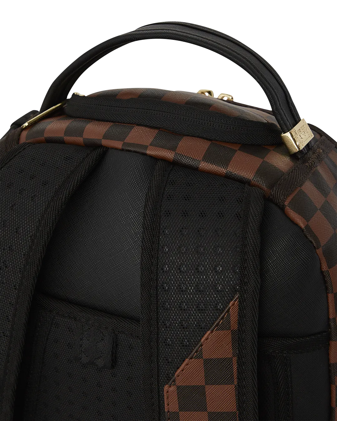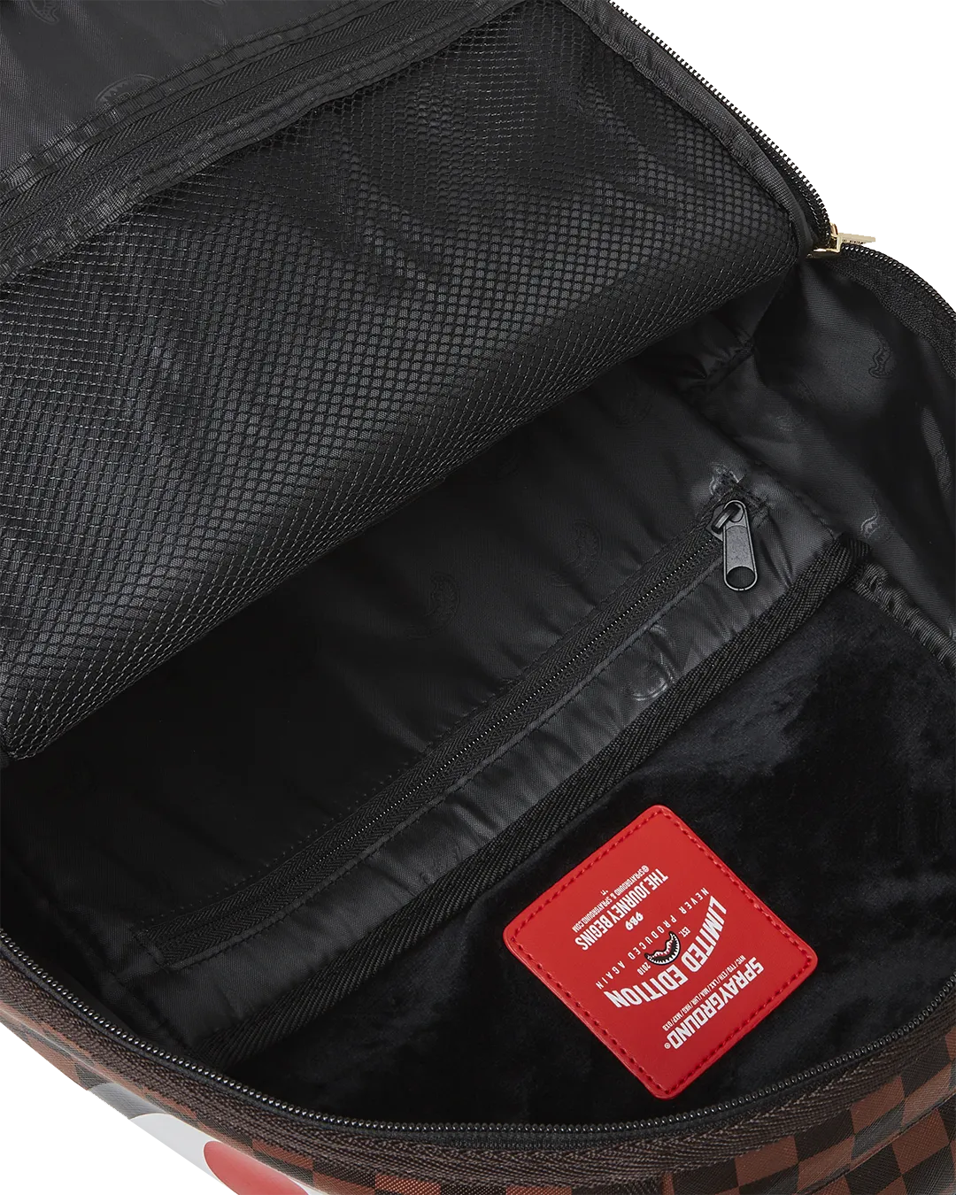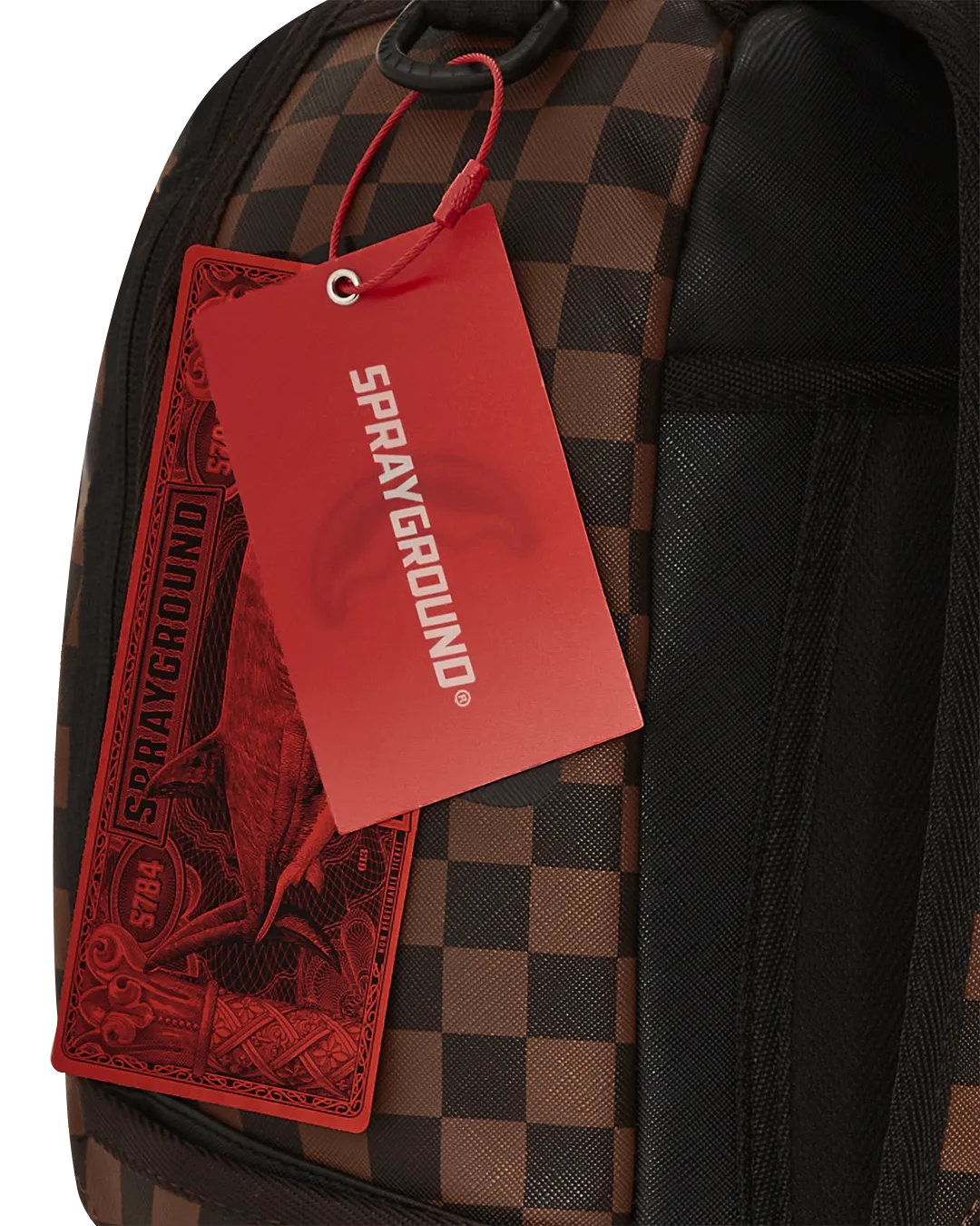 Dimensions: 18″ x 6″ x 11.5″ ? Front zipper pocket ? Side pockets ? Zippered Stash pocket ? Separate velour sunglass compartment ? Ergonomic mesh back padding ? Adjustable Straps for custom sizing ? Gold zippers with metal hardware ? Metal “Sprayground Authentic” badge ? Slide through back sleeve connects to carry-on luggage to free your hands