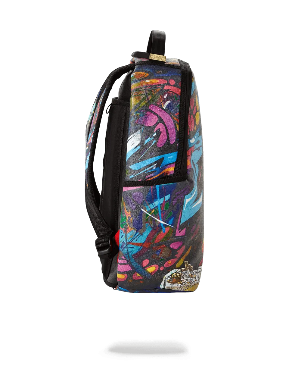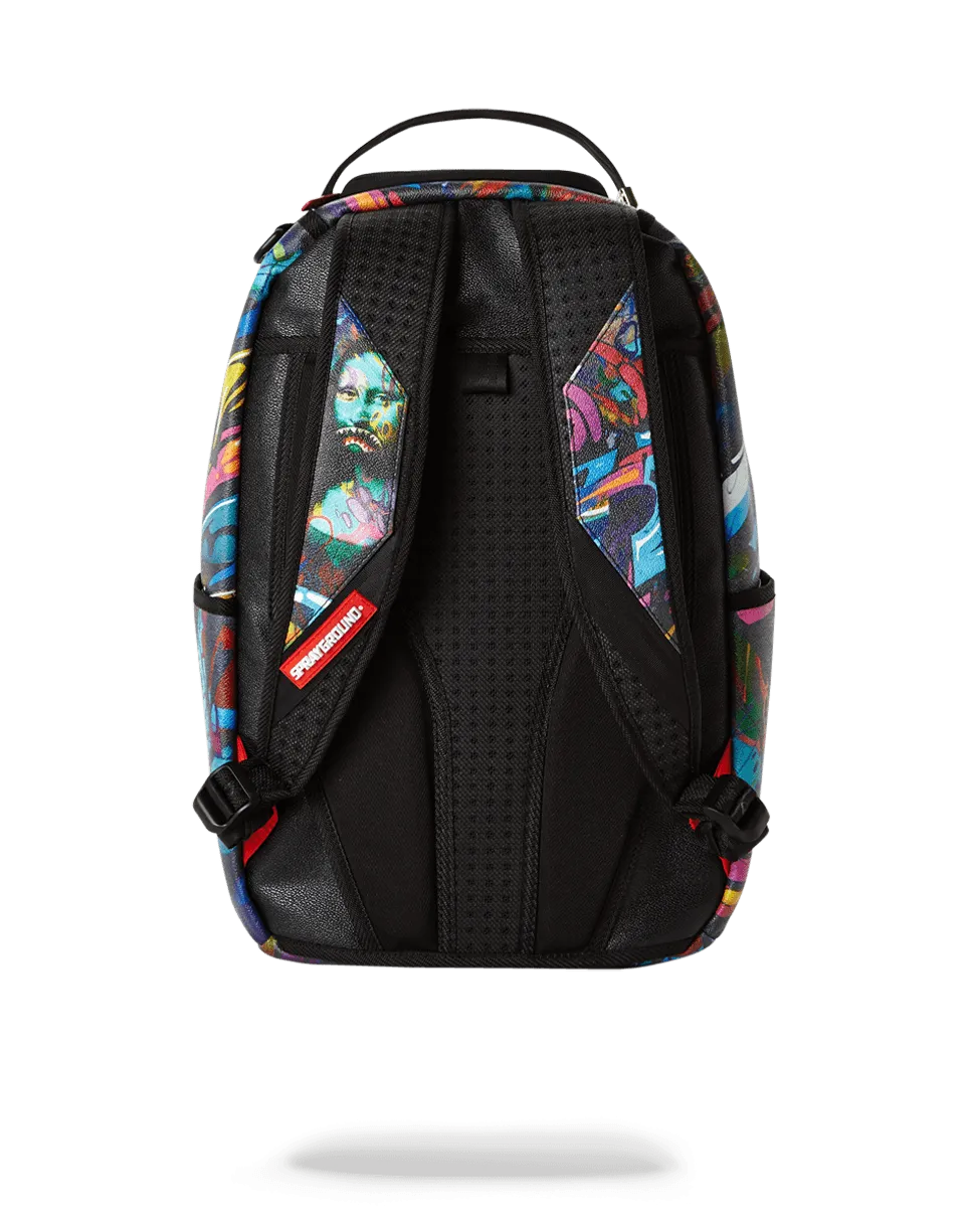 Dimensions: 18″ x 6″ x 11.5″ ? Front zipper pocket ? Side pockets ? Zippered Stash pocket ? Ergonomic mesh back padding ? Adjustable Straps for custom sizing ? Nylon Zippers with Metal Hardware ? Metal “Sprayground Authentic” badge ? Slide through back sleeve connects to Carry on luggage to free your hands