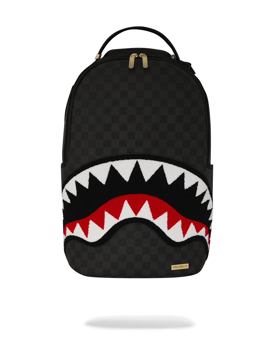 LIGHTS OUT SHARKS IN PARIS CHENILLE SHARK BACKPACK