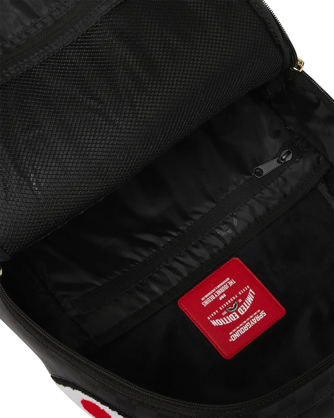 Dimensions: 18″ x 6″ x 11.5″ ? Front zipper pocket ? Side pockets ? Zippered Stash pocket ? Separate velour sunglass compartment ? Ergonomic mesh back padding ? Adjustable Straps for custom sizing ? Gold zippers with metal hardware ? Metal “Sprayground Authentic” badge ? Slide through back sleeve connects to carry-on luggage to free your hands