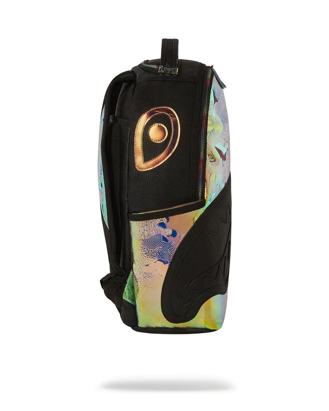 Dimensions: 18″ x 6″ x 11.5″ ? Front zipper pocket ? Side pockets ? Zippered Stash pocket ? Separate velour sunglass compartment ? Ergonomic mesh back padding ? Adjustable Straps for custom sizing ? Red zippers with metal hardware ? Metal “Sprayground Authentic” badge ? Slide through back sleeve connects to carry-on luggage to free your hands