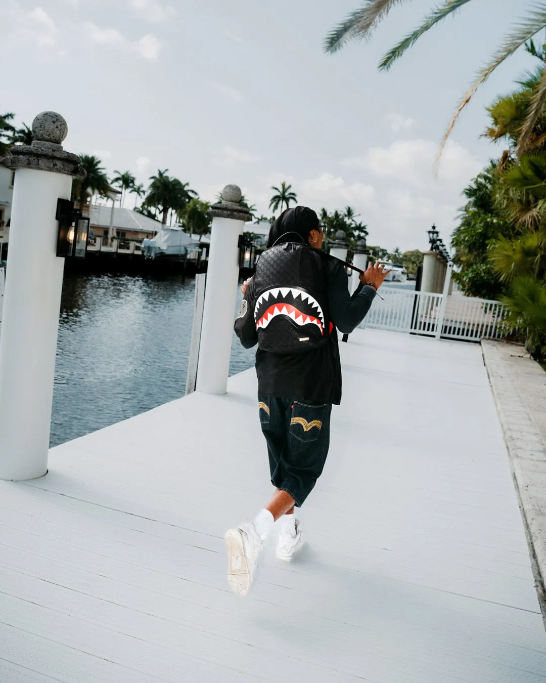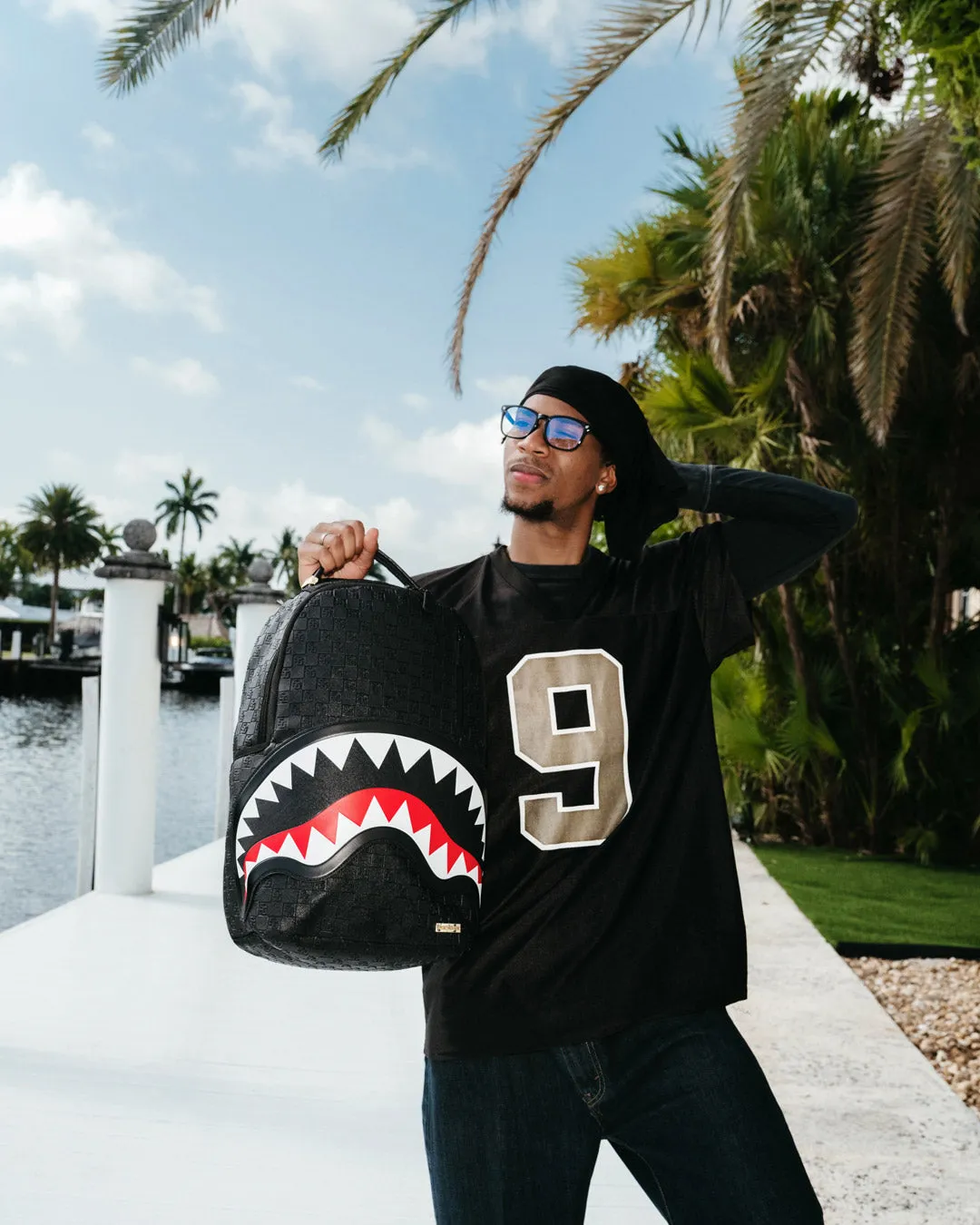 Dimensions: 18″ x 6″ x 11.5″ ? Front zipper pocket ? Side pockets ? Zippered Stash pocket ? Separate velour sunglass compartment ? Ergonomic mesh back padding ? Adjustable Straps for custom sizing ? Gold zippers with metal hardware ? Metal “Sprayground Authentic” badge ? Slide through back sleeve connects to carry-on luggage to free your hands