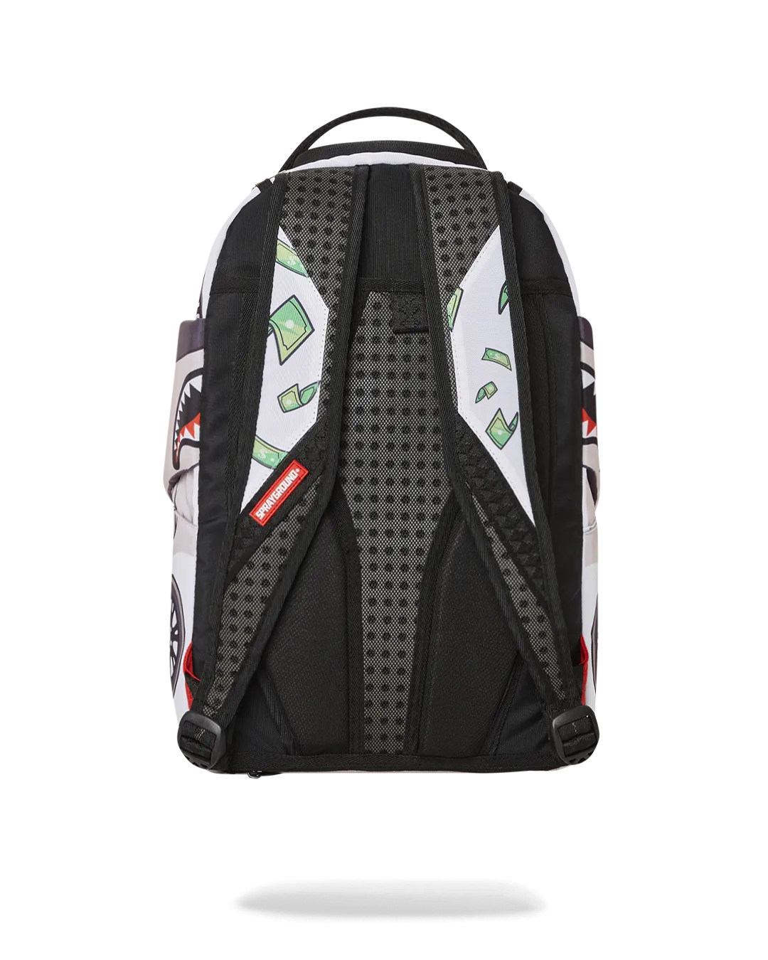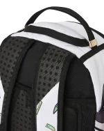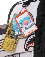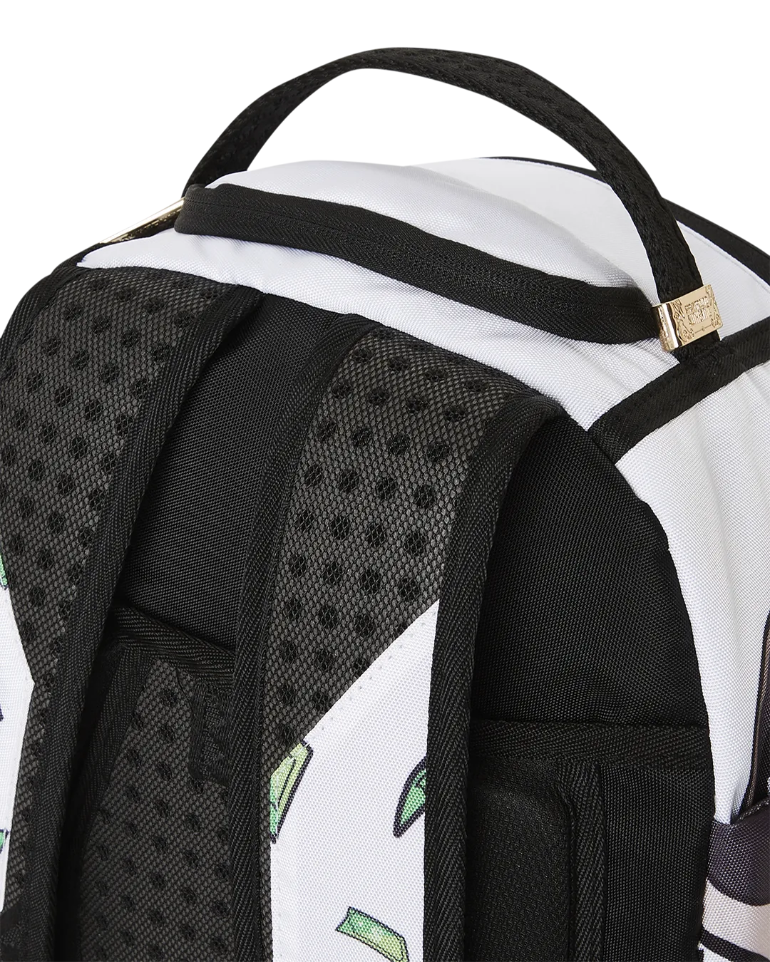 ? Front zipper pocket ? Side pockets ? Zippered Stash pocket ? Separate velour sunglass compartment ? Ergonomic mesh back padding ? Adjustable Straps for custom sizing ? Gold zippers with metal hardware ? Metal “Sprayground Authentic” badge ? Slide through back sleeve connects to carry-on luggage to free your hands