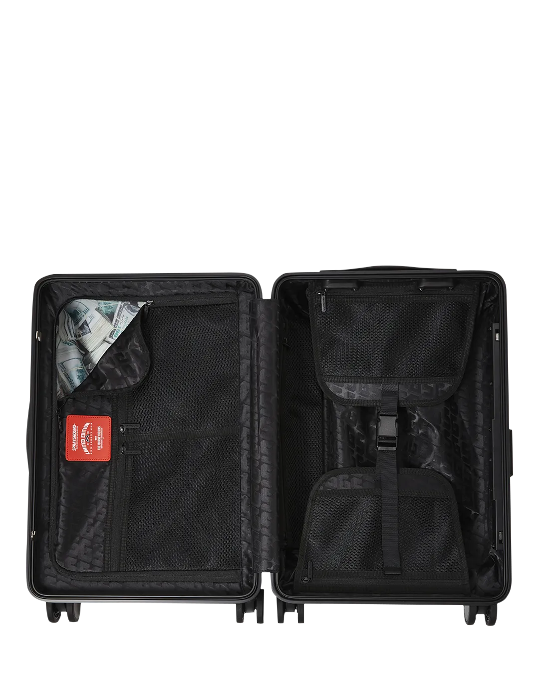 Sprayground products are rigorously tested to ensure that the travel products you trust meet stringent standards. Consequently, if a problem occurs with this Sprayground luggage and the problem is caused by manufacturing defects in material and workmanship, Sprayground will, in its discretion, either fix or replace the luggage in accordance with the warranty terms and conditions stated herein. The warranty provided for herein applies only to the first purchaser or gift recipient of the luggage for a period of one year starting from the date this luggage was purchased. This warranty covers only manufacturing defects and does not cover any damage caused by misuse such as transportation of unusual items, neglect, accidents, abrasion, exposure to extreme temperatures, solvents, acids, water, normal wear and tear or transport damage. The warranty provided herein is limited to the value of the Product. Manufacturing specifications are subject to change without notice. Product is made in limited edition production and if product needs to be replaced and it is not available anymore, then either a store credit will be given if the product can not be replaced.