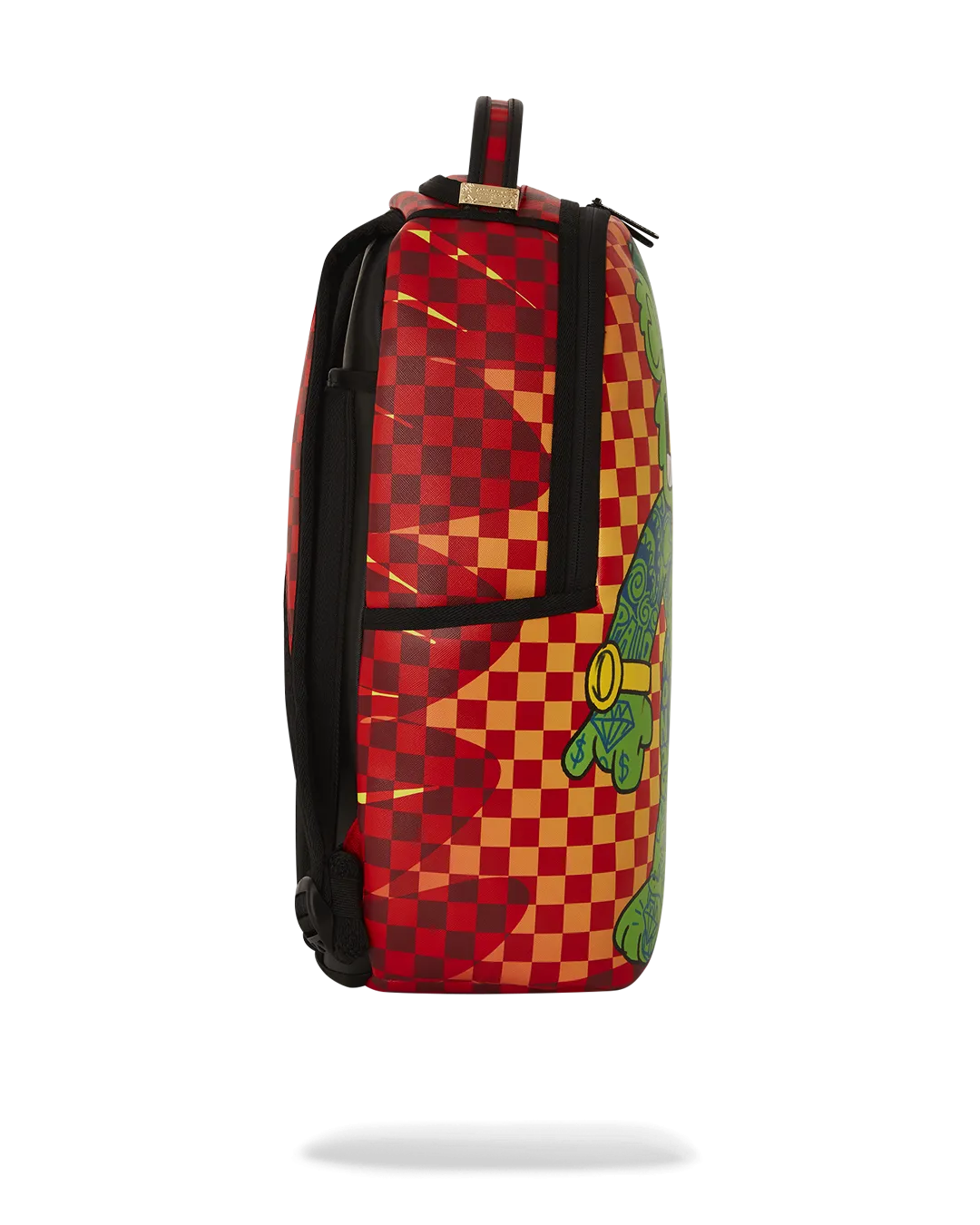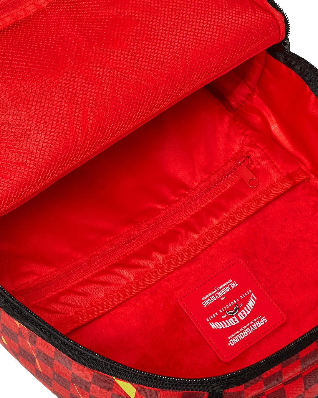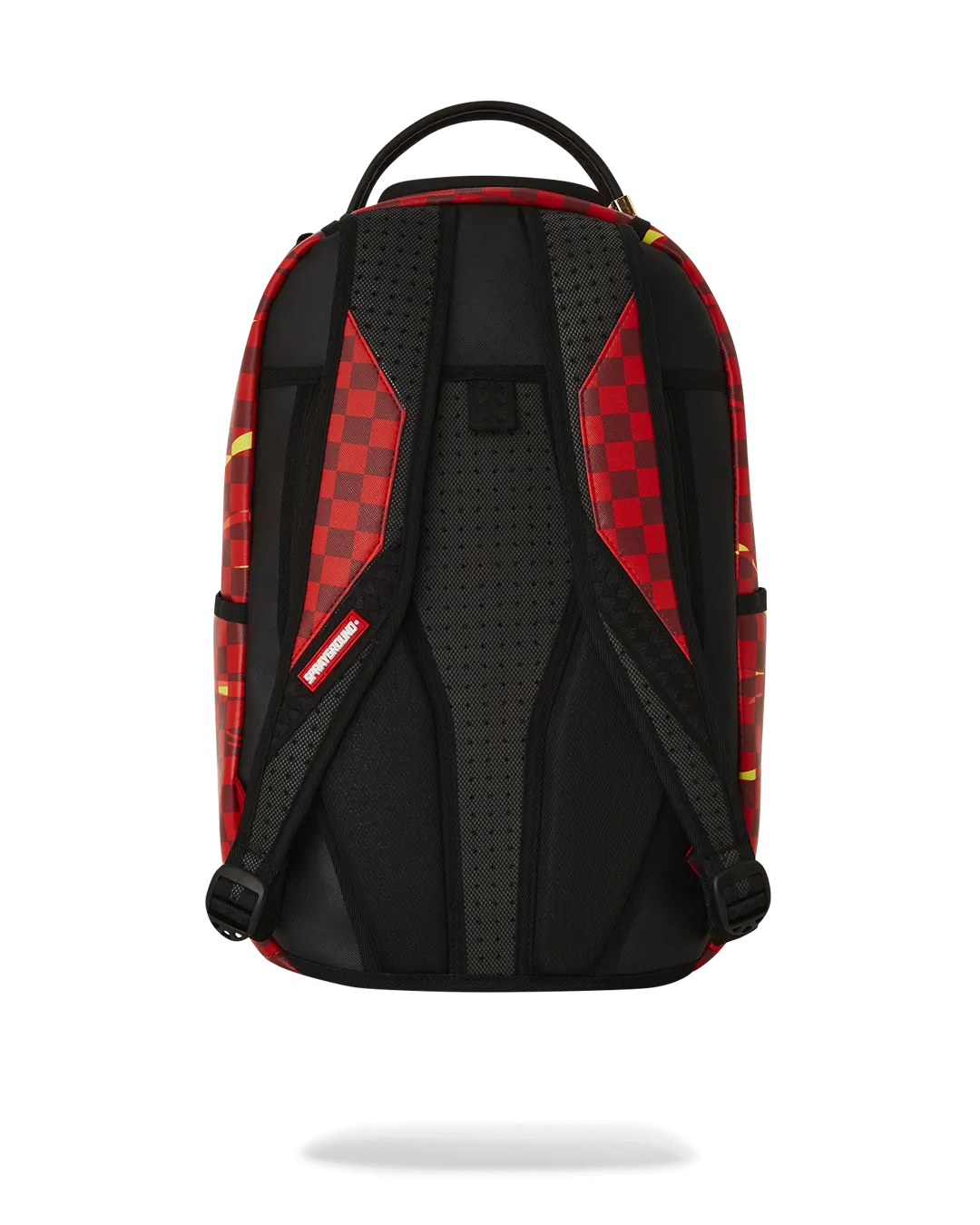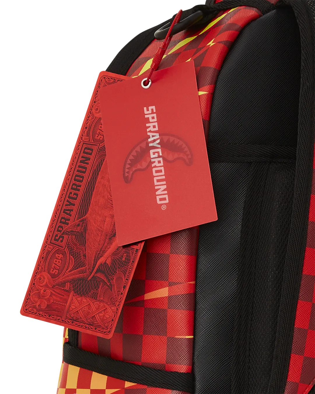 Dimensions: 18″ x 6″ x 11.5″ ? Front zipper pocket ? Side pockets ? Zippered Stash pocket ? Separate velour sunglass compartment ? Ergonomic mesh back padding ? Adjustable Straps for custom sizing ? Gold zippers with metal hardware ? Metal “Sprayground Authentic” badge ? Slide through back sleeve connects to carry-on luggage to free your hands