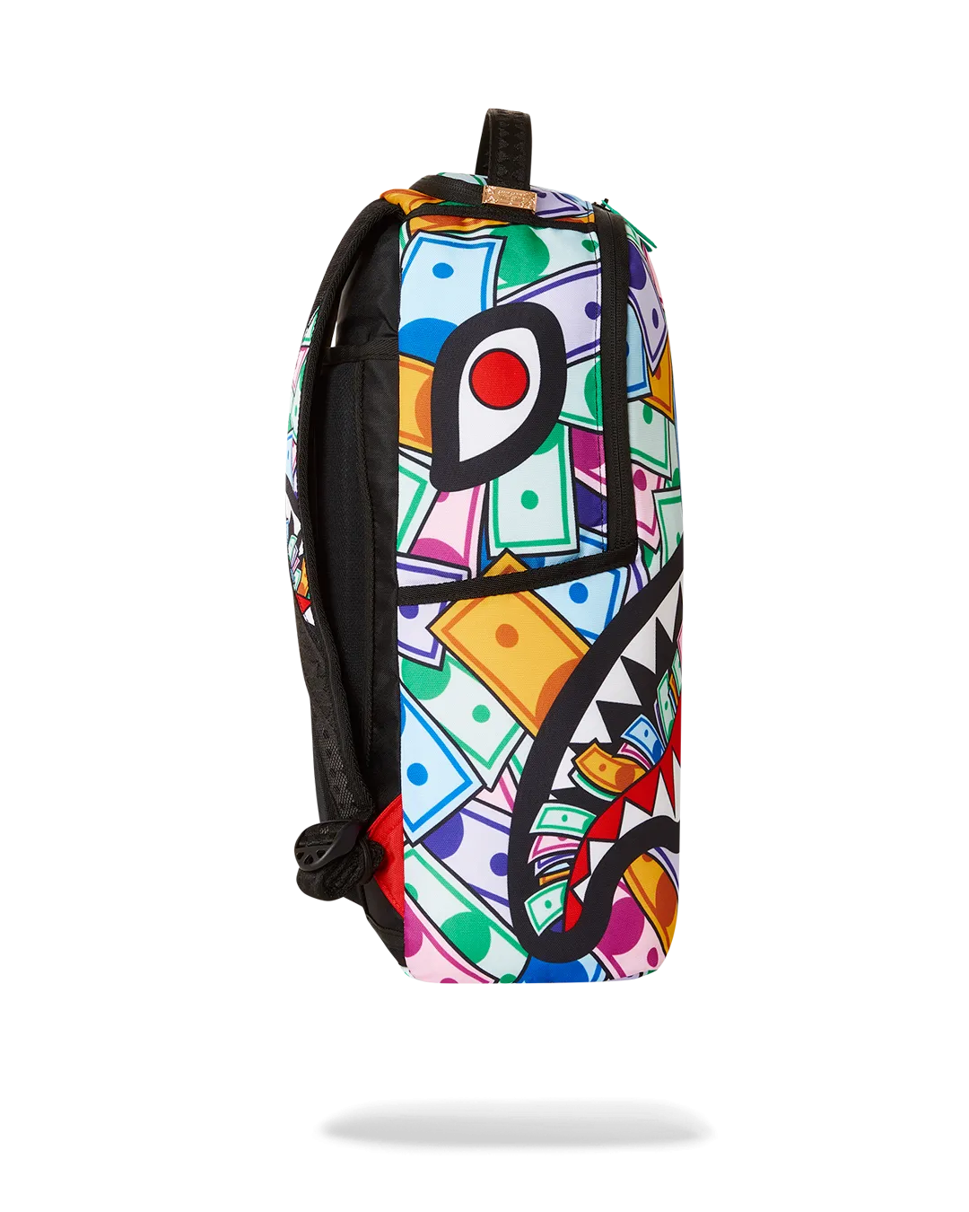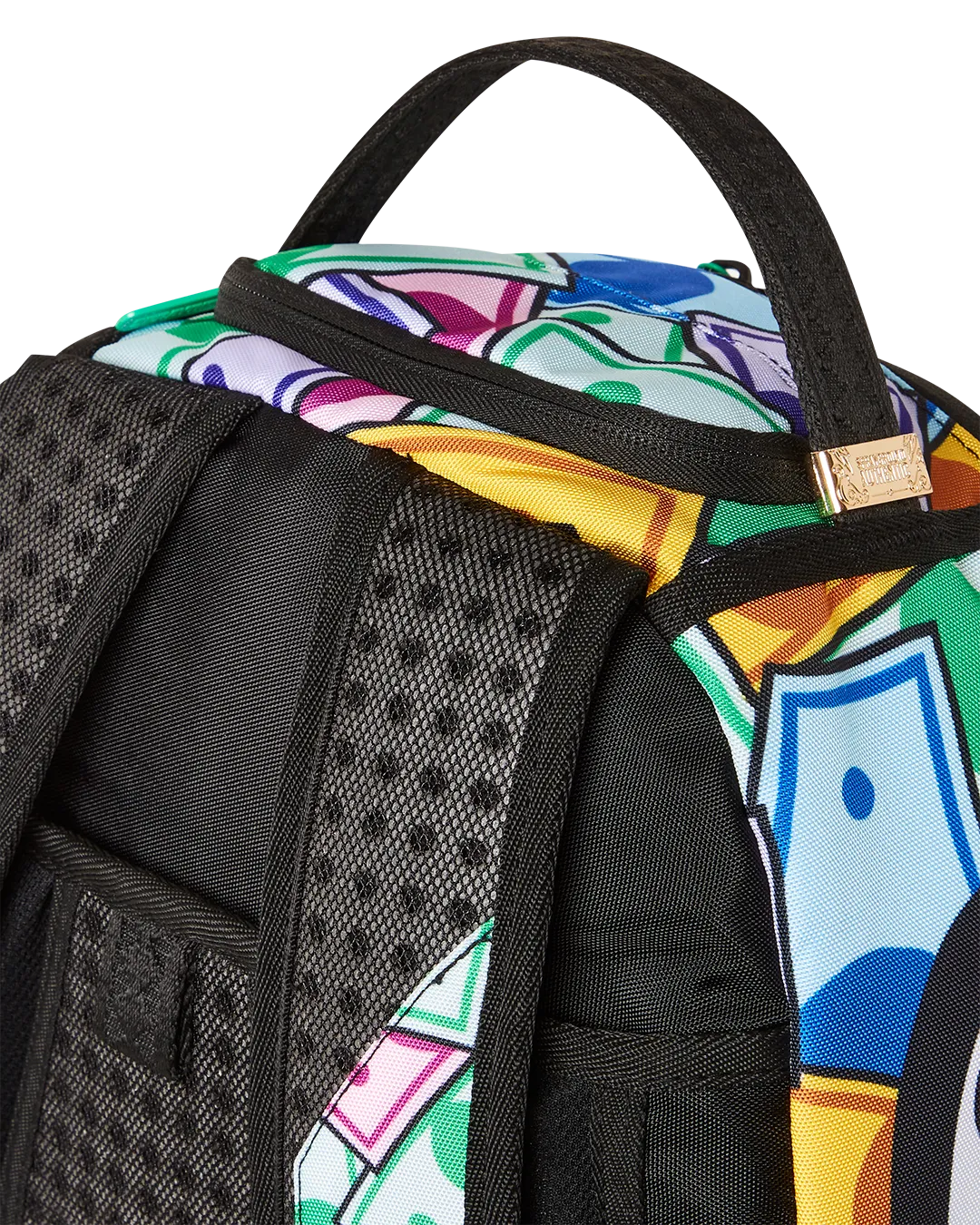 Dimensions: 18″ x 6″ x 11.5″ ? Front zipper pocket ? Side pockets ? Zippered Stash pocket ? Separate velour sunglass compartment ? Ergonomic mesh back padding ? Adjustable Straps for custom sizing ? Gold zippers with metal hardware ? Metal “Sprayground Authentic” badge ? Slide through back sleeve connects to carry-on luggage to free your hands