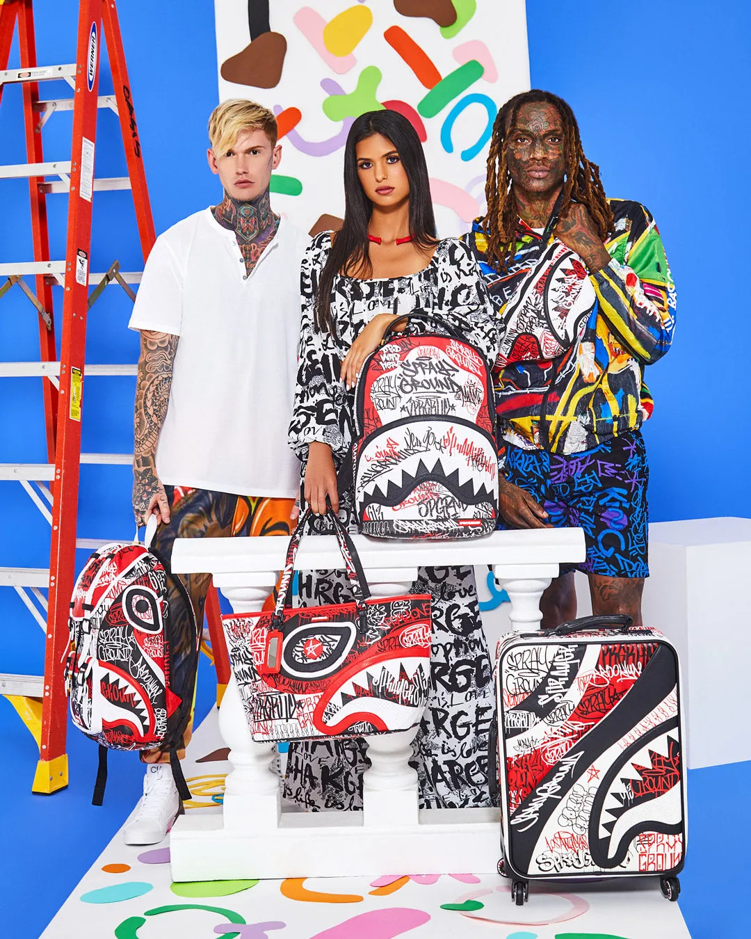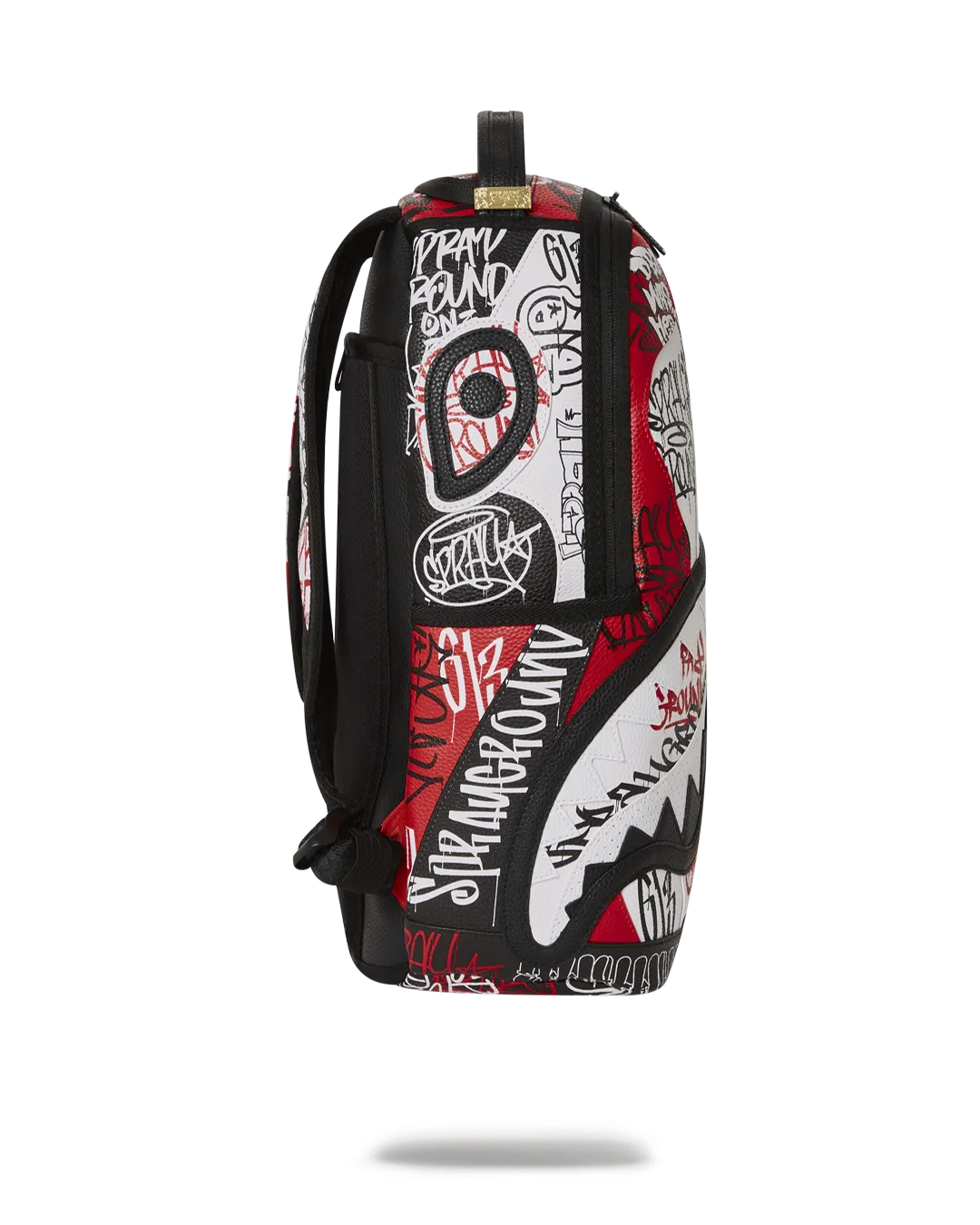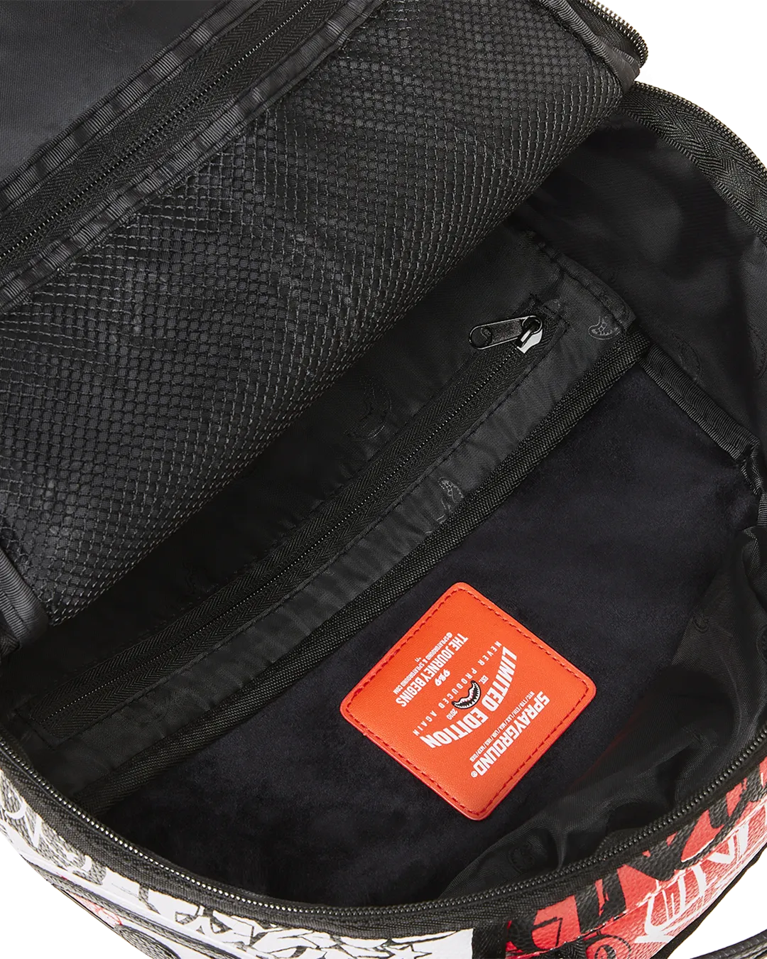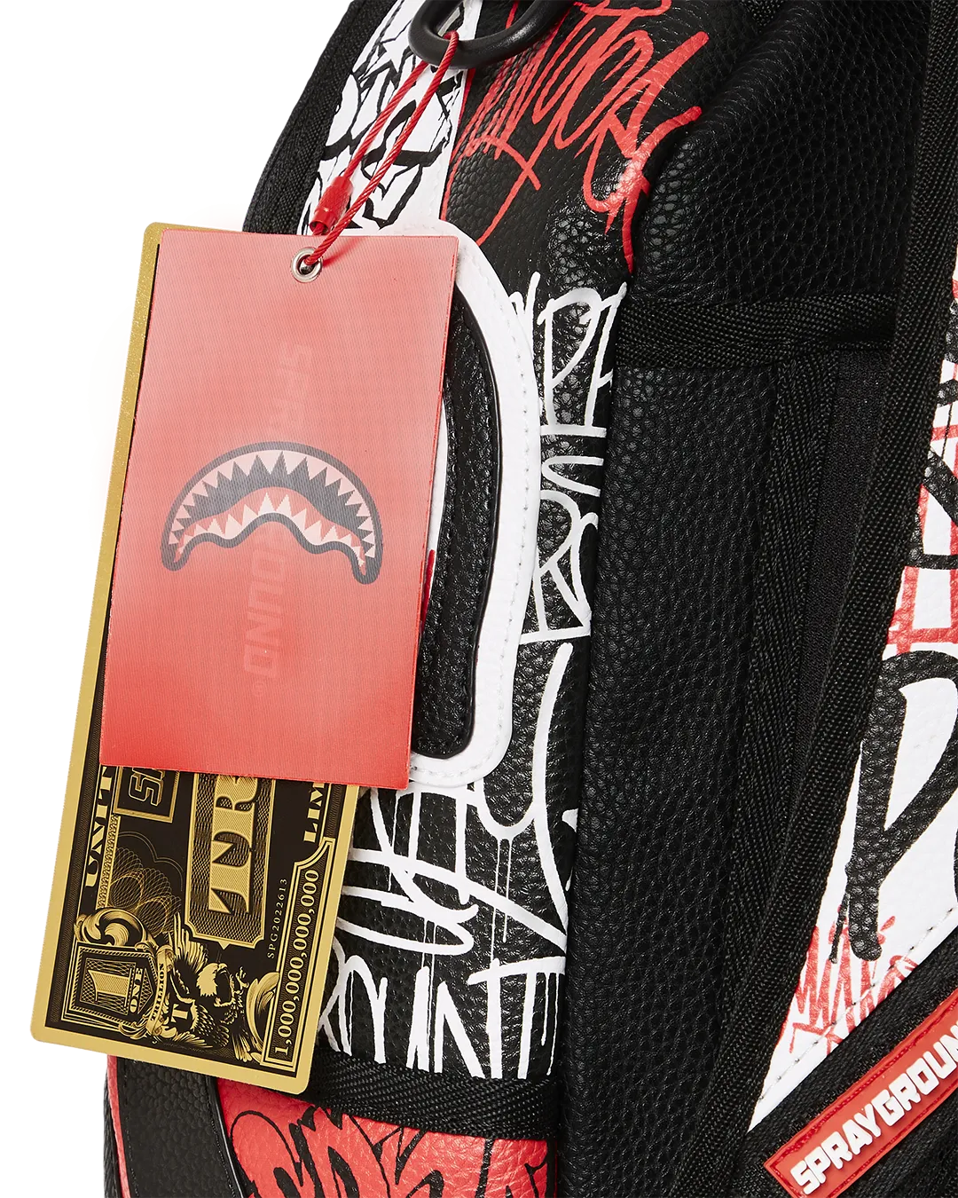 Dimensions: 18″ x 6″ x 11.5″ ? Front zipper pocket ? Side pockets ? Zippered Stash pocket ? Separate velour sunglass compartment ? Ergonomic mesh back padding ? Adjustable Straps for custom sizing ? Gold zippers with metal hardware ? Metal “Sprayground Authentic” badge ? Slide through back sleeve connects to carry-on luggage to free your hands