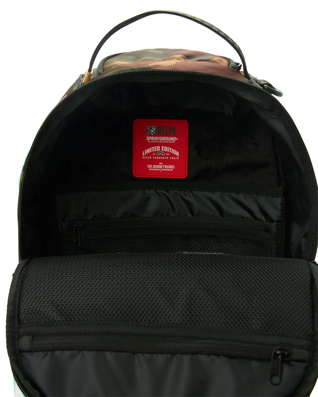 Dimensions: 18″ x 6″ x 11.5″ ?Front zipper pocket???Side pockets???Zippered Stash pocket ? Ergonomic mesh back padding??Adjustable Straps for custom sizing ? Nylon Zippers with Metal Hardware ? Metal “Sprayground Authentic” badge ?Slide through back sleeve connects to Carry on luggage to free your hands