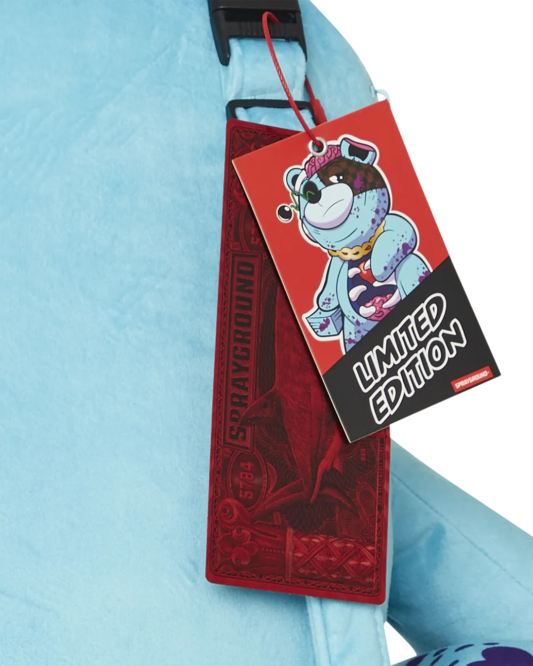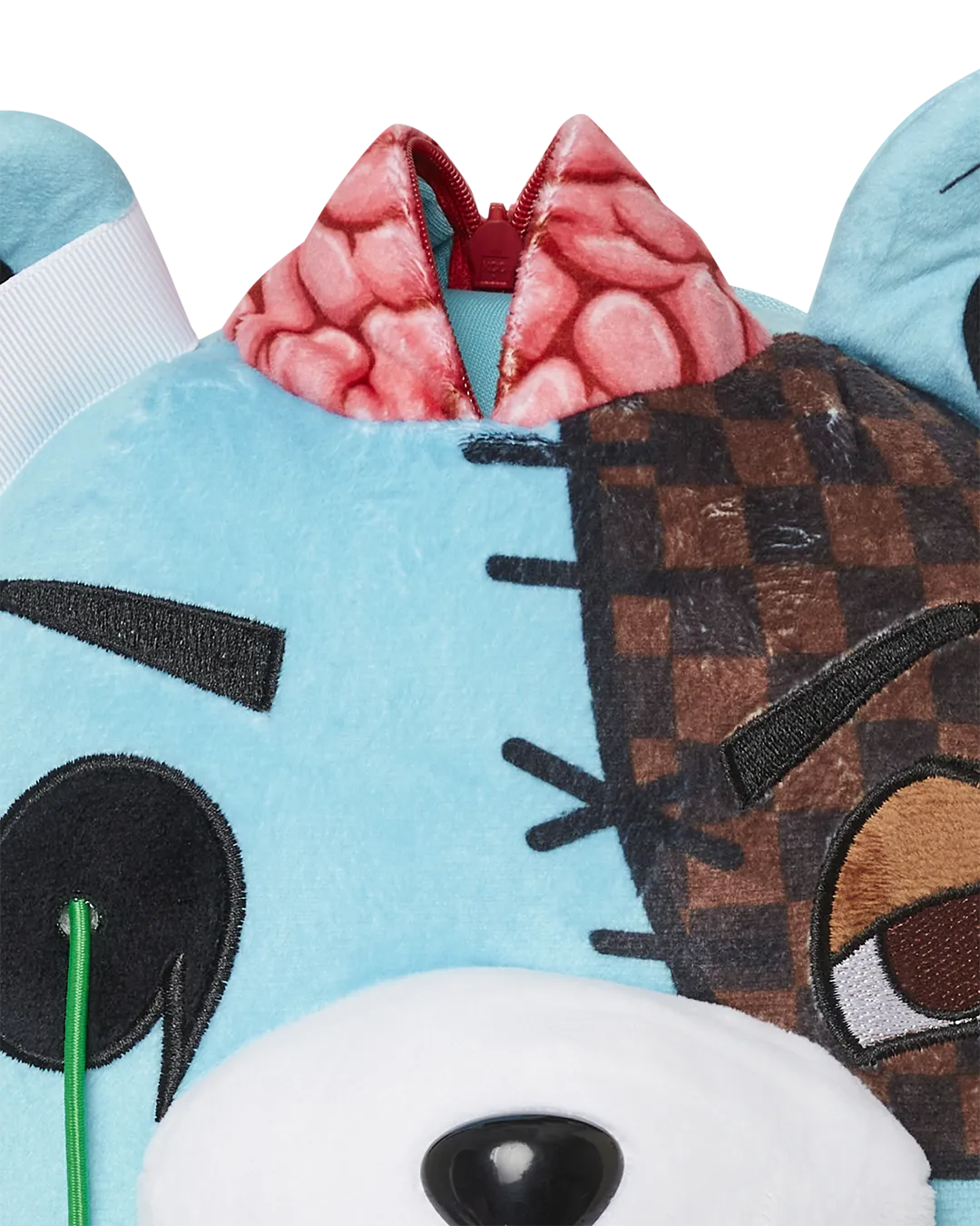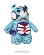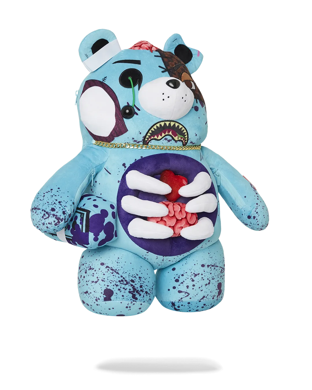 Gory Zombie bear is a heavily detailed plush backpack showing his soft heart, ribs and intestines. Brain unzips as a secret pocket?