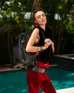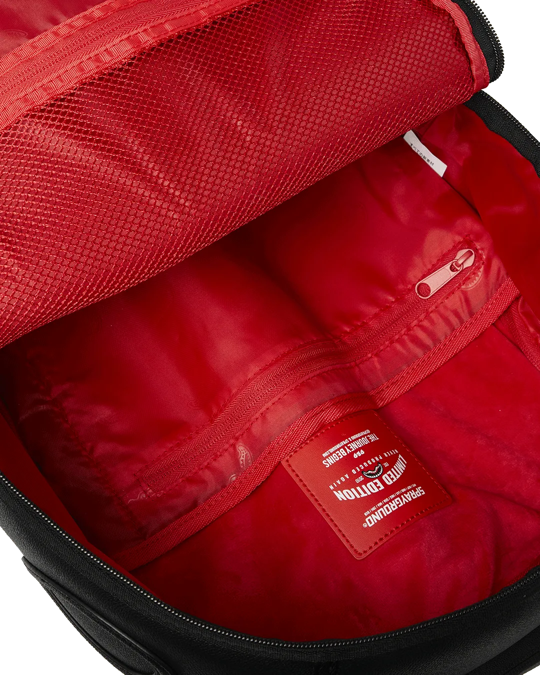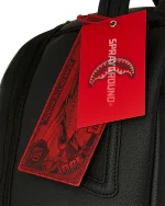 Dimensions: 19″ H X 12″ W X 7″ D? ? Front zipper pocket ? Side pockets ? Zippered Stash pocket ? Separate velour sunglass compartment ? Ergonomic mesh back padding ? Adjustable Straps for custom sizing ? Gold zippers with metal hardware ? Metal “Sprayground Authentic” badge ? Slide through back sleeve connects to carry-on luggage to free your hands