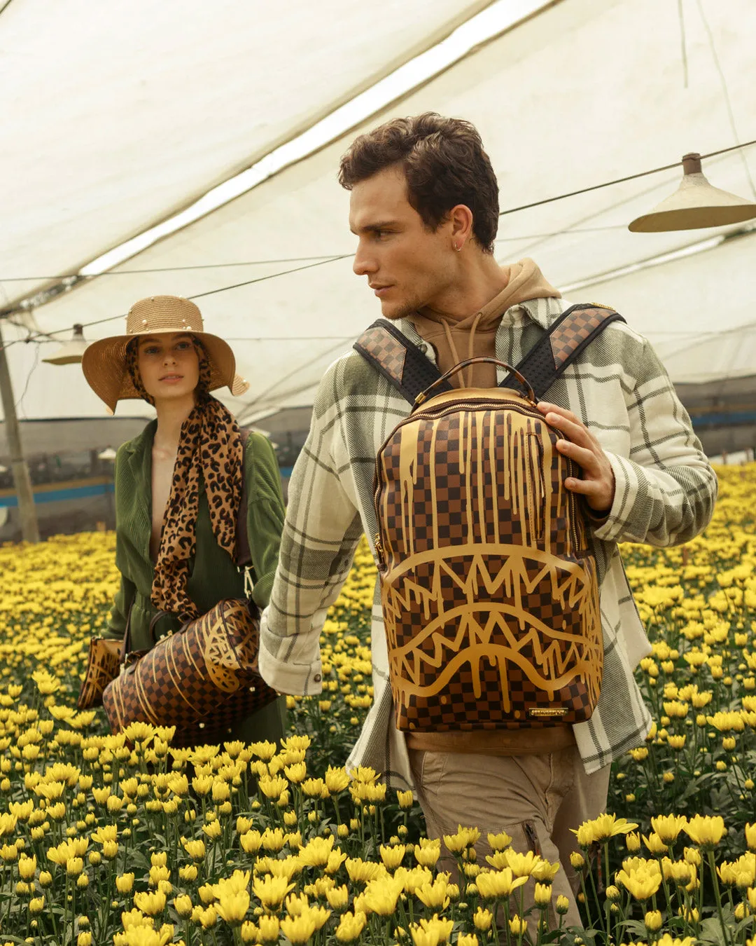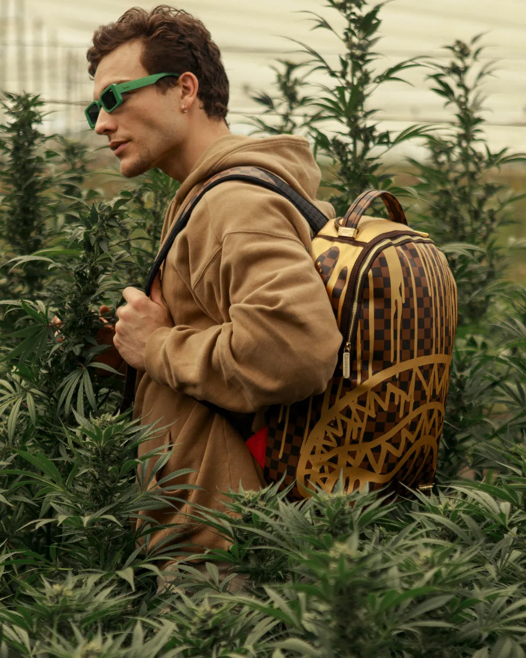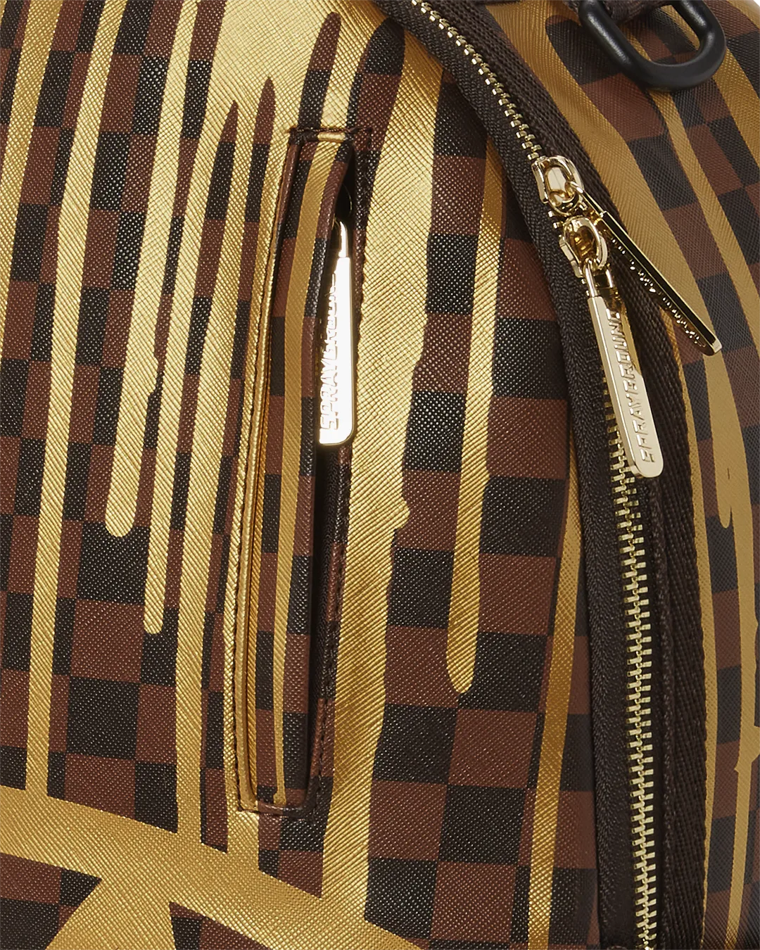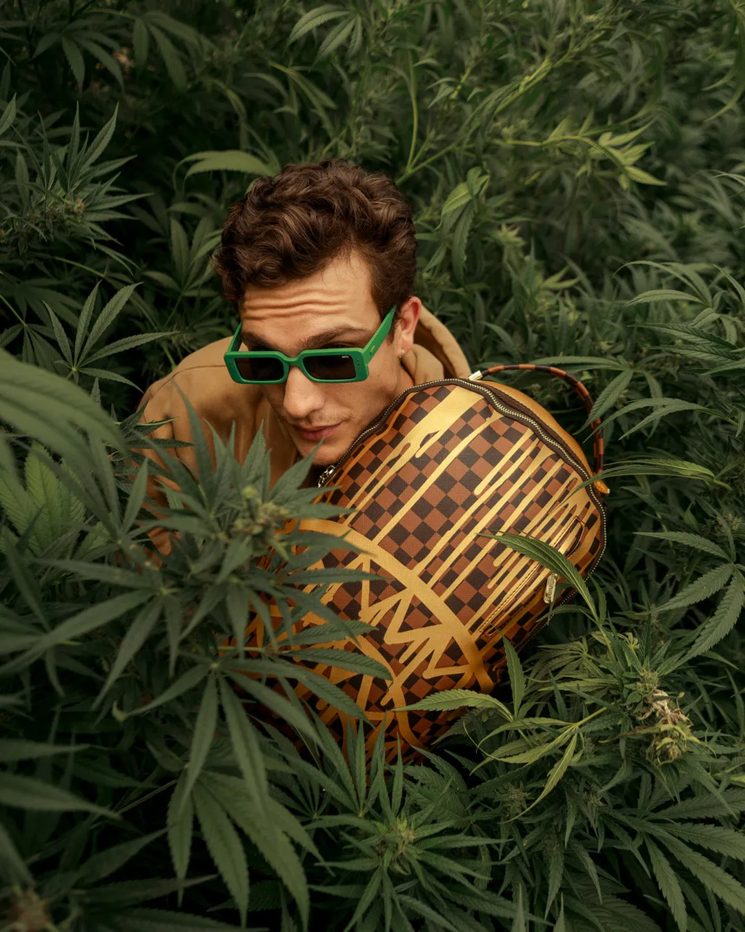 Dimensions: 18″ x 6″ x 11.5″ ? Front zipper pocket ? Side pockets ? Zippered Stash pocket ? Separate velour sunglass compartment ? Ergonomic mesh back padding ? Adjustable Straps for custom sizing ? Gold zippers with metal hardware ? Metal “Sprayground Authentic” badge ? Slide through back sleeve connects to carry-on luggage to free your hands