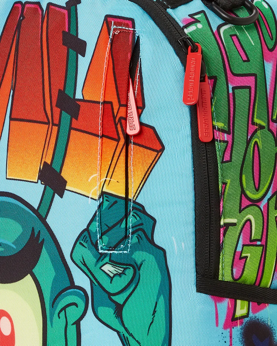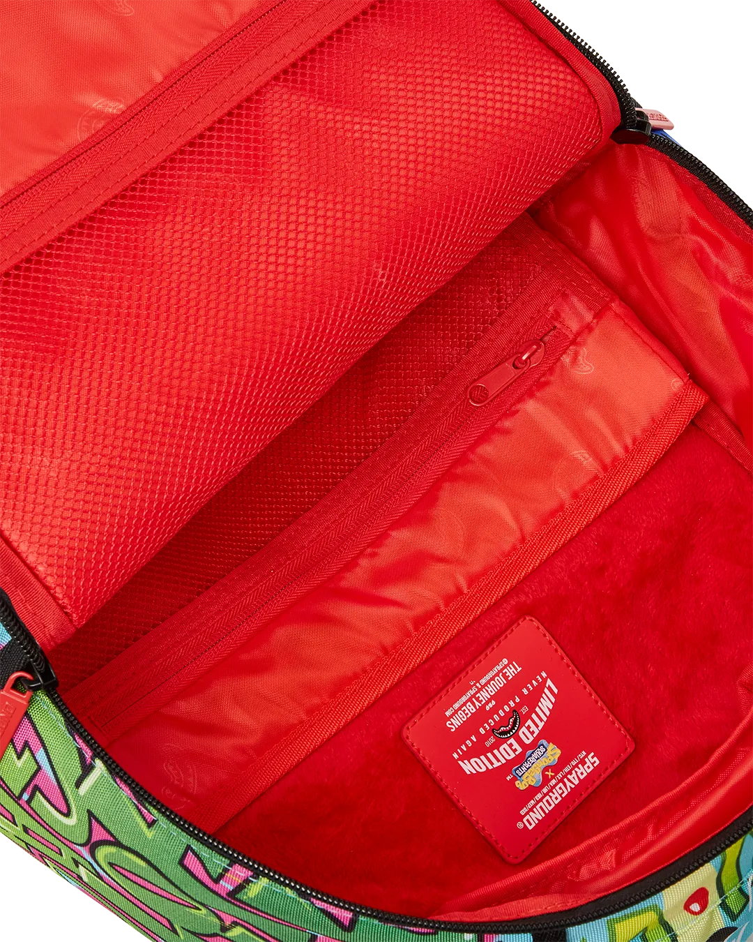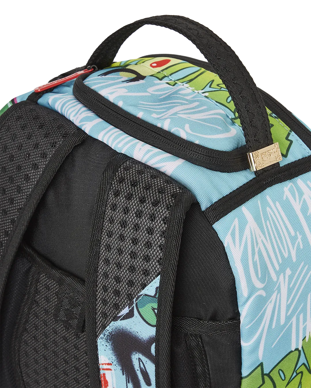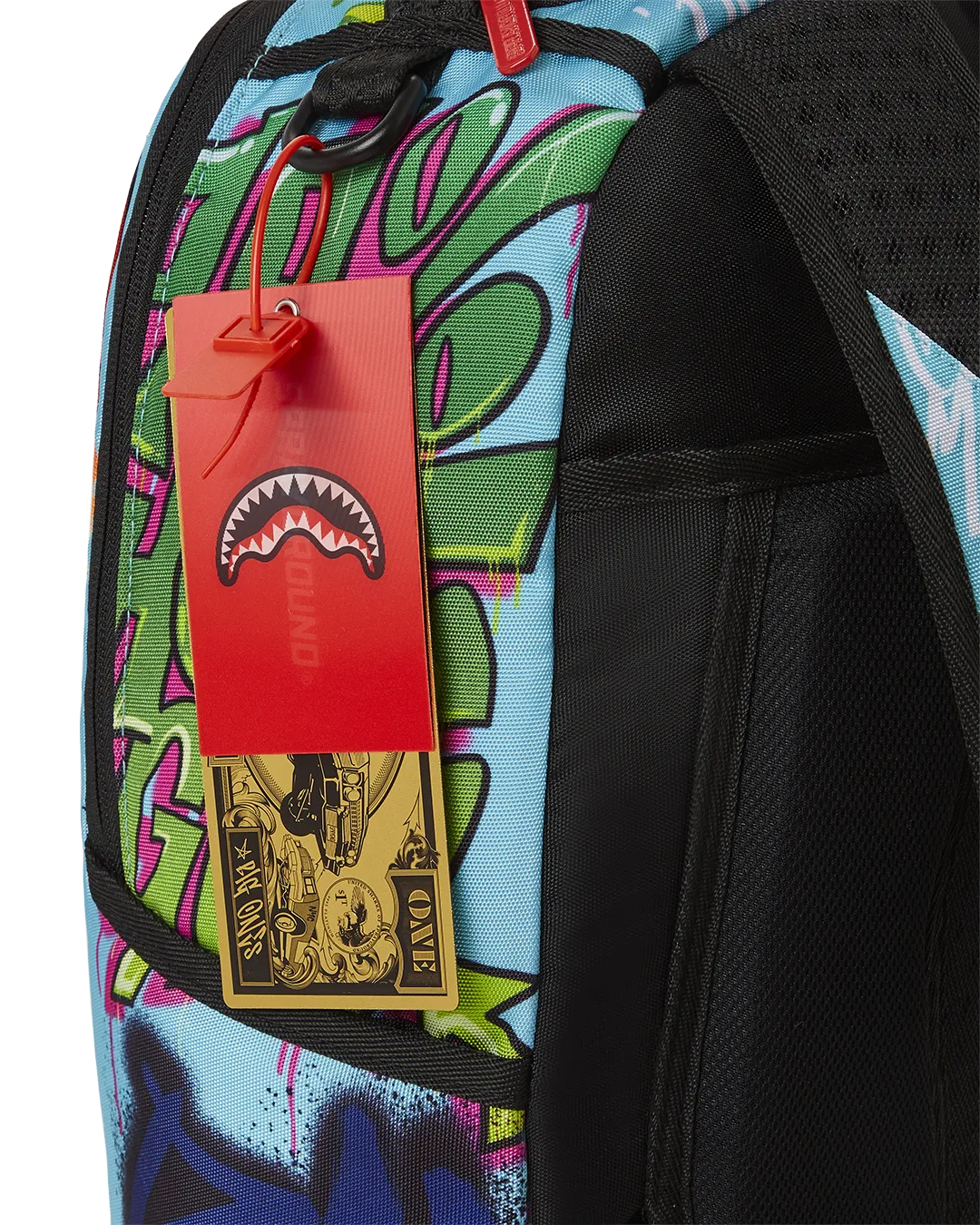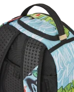 Dimensions: 18″ x 6″ x 11.5″ ? Front zipper pocket ? Side pockets ? Zippered Stash pocket ? Separate velour sunglass compartment ? Ergonomic mesh back padding ? Adjustable Straps for custom sizing ? Green zippers with metal hardware ? Metal “Sprayground Authentic” badge ? Slide through back sleeve connects to carry on luggage to free your hands