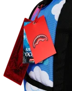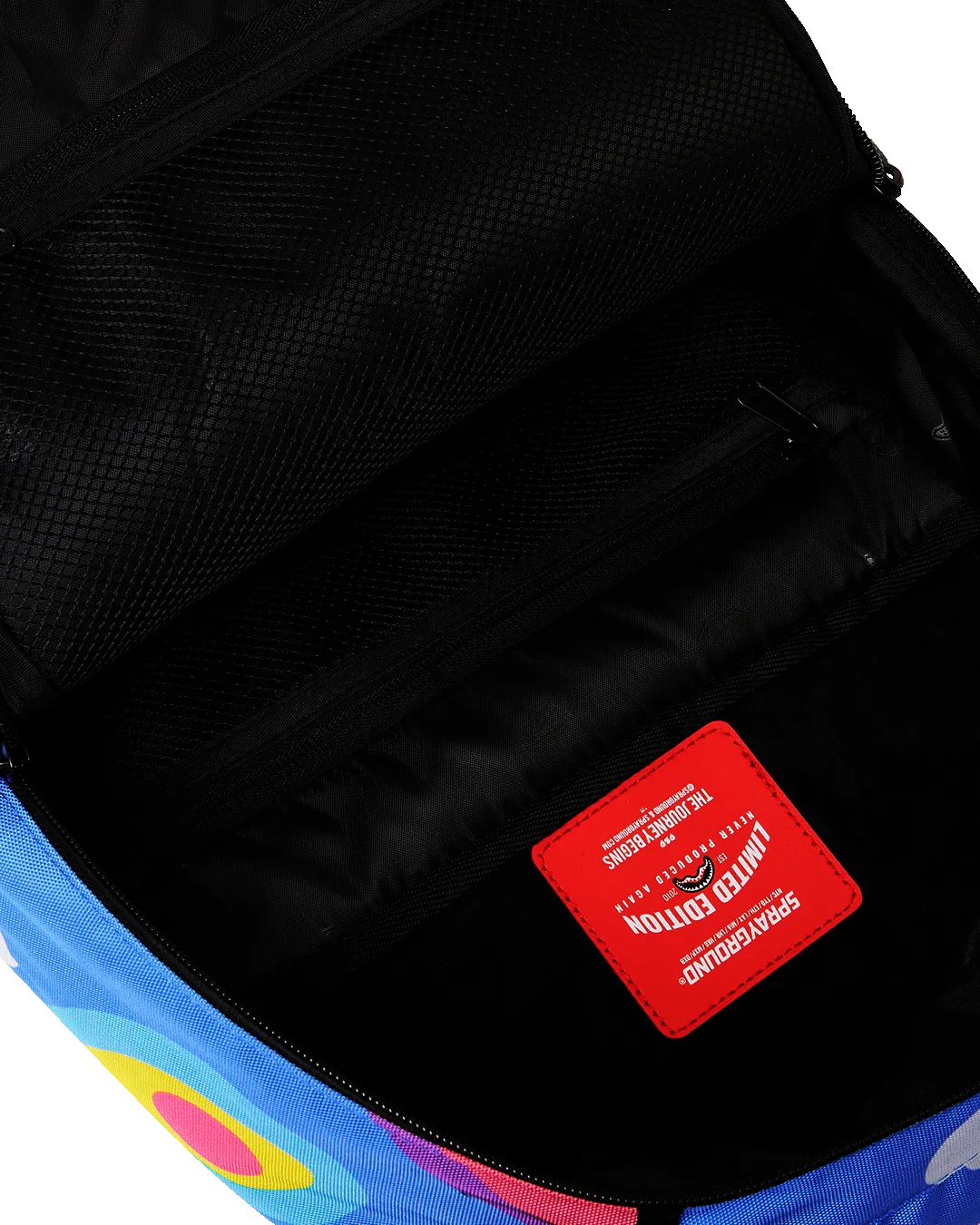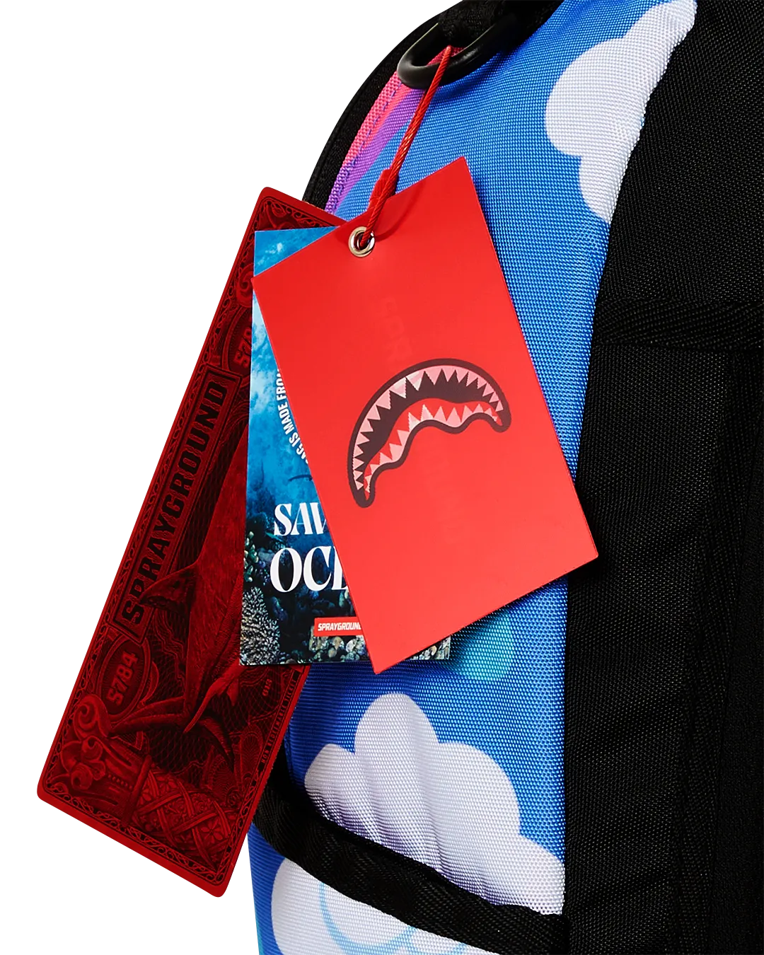 Dimensions: 18″ x 6″ x 11.5″ ? Front zipper pocket ? Side pockets ? Zippered Stash pocket ? Separate velour sunglass compartment ? Ergonomic mesh back padding ? Adjustable Straps for custom sizing ? Gold zippers with metal hardware ? Metal “Sprayground Authentic” badge ? Slide through back sleeve connects to carry-on luggage to free your hands