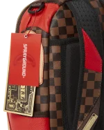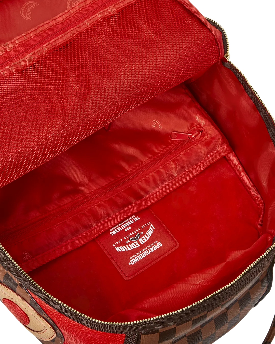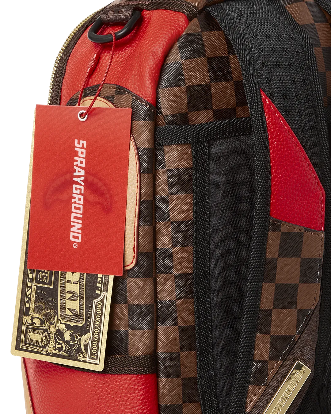 Dimensions: 18″ x 6″ x 11.5″ ? Front zipper pocket ? Side pockets ? Zippered Stash pocket ? Separate velour sunglass compartment ? Ergonomic mesh back padding ? Adjustable Straps for custom sizing ? Gold zippers with metal hardware ? Metal “Sprayground Authentic” badge ? Slide through back sleeve connects to carry-on luggage to free your hands
