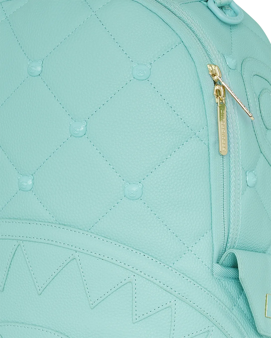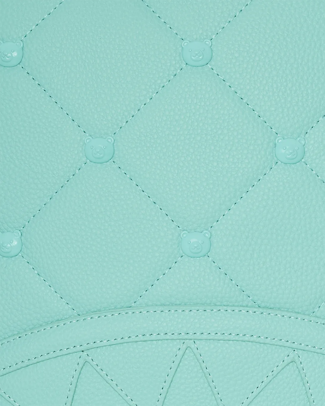 Quilted PVC with bear head studs and cut and sew sharkmouth details.