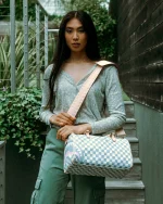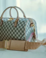 Dimensions: 8″ x 7.5″ x 13″ ? Zippered top opening ? Zippered pocket on back panel ? Zippered side pocket ? Removable adjustable strap for custom sizing with reinforced crossbody construction ? Logo embossed shoulder pad for comfort ? Gold zippers with metal hardware ? Zippered stash pocket