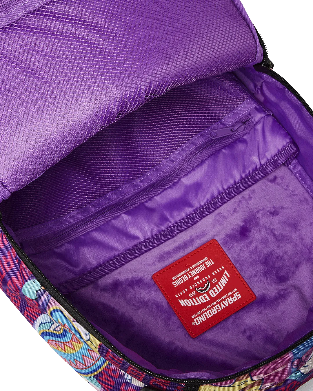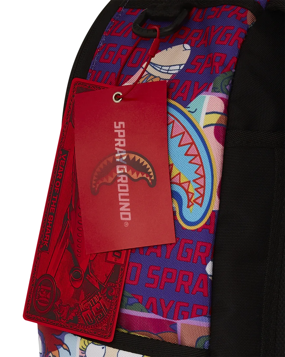 Dimensions: 18″ x 6″ x 11.5″ ? Front zipper pocket ? Side pockets ? Zippered Stash pocket ? Separate velour sunglass compartment ? Ergonomic mesh back padding ? Adjustable Straps for custom sizing ? Gold zippers with metal hardware ? Metal “Sprayground Authentic” badge ? Slide through back sleeve connects to carry-on luggage to free your hands