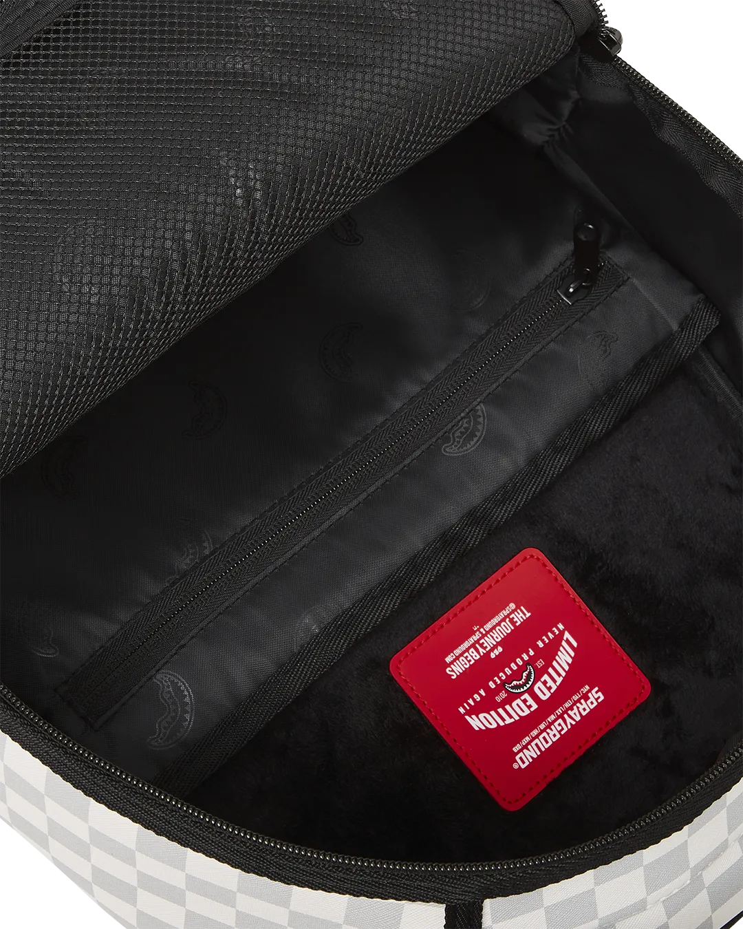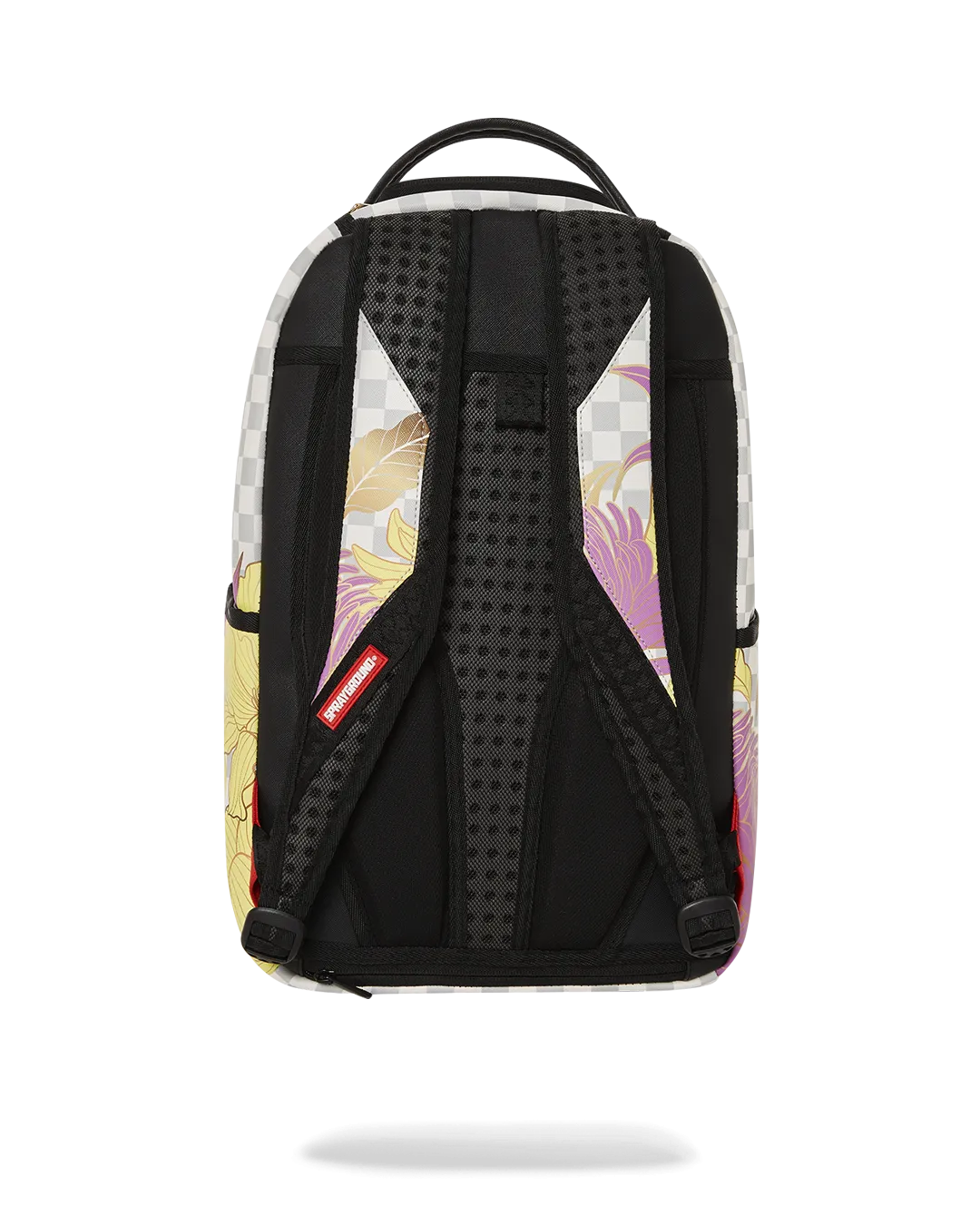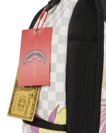 Dimensions: 18″ x 6″ x 11.5″ ? Front zipper pocket ? Side pockets ? Zippered Stash pocket ? Separate velour sunglass compartment ? Ergonomic mesh back padding ? Adjustable Straps for custom sizing ? Gold zippers with metal hardware ? Metal “Sprayground Authentic” badge ? Slide through back sleeve connects to carry-on luggage to free your hands