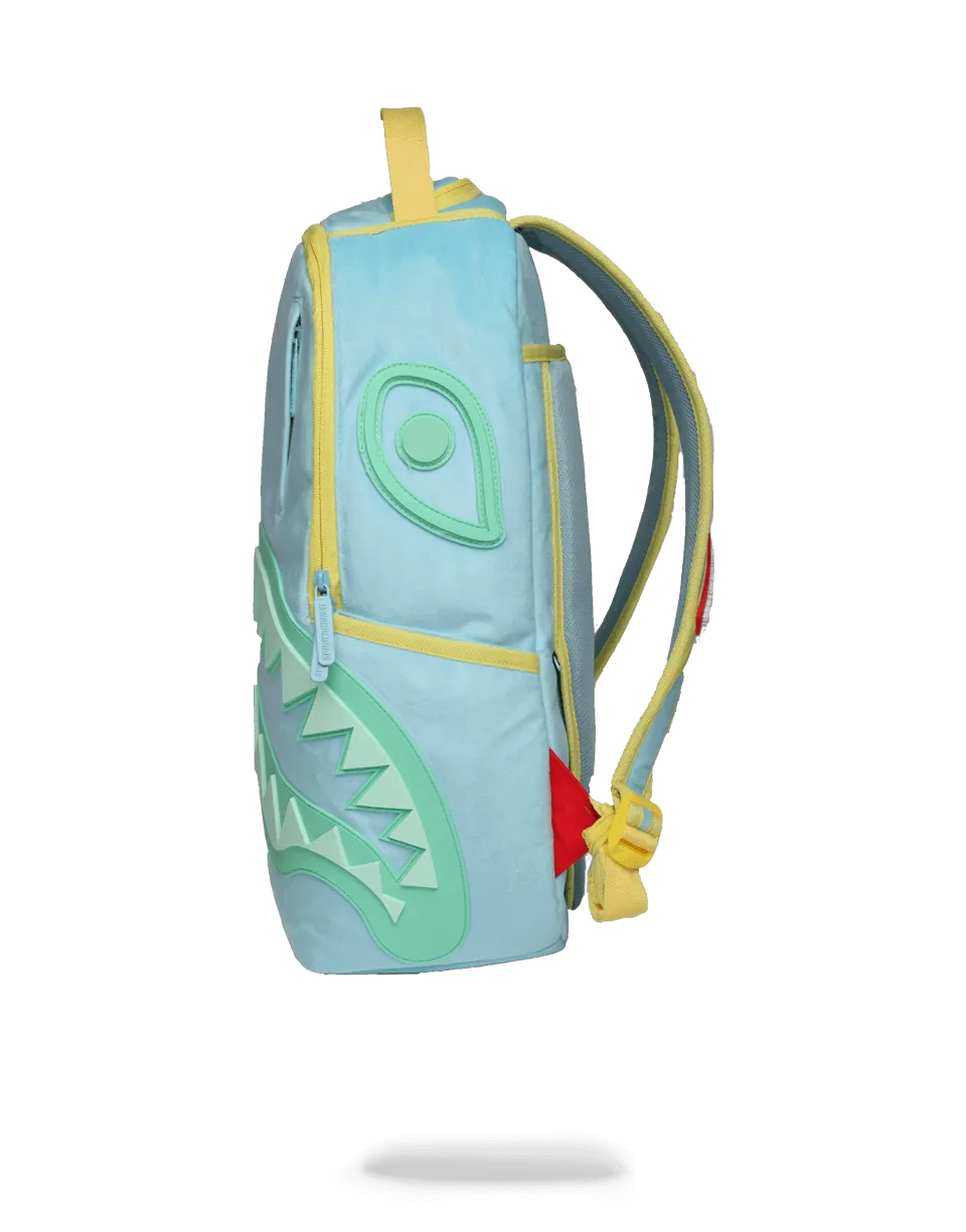 Designed in collaboration with the one and only ICY GIRL- this bag features velour fabric in a bright pastel color with a 3d molded rubber shark. Keep checking back for updates?on the release of this backpack, as there are only a few available.?