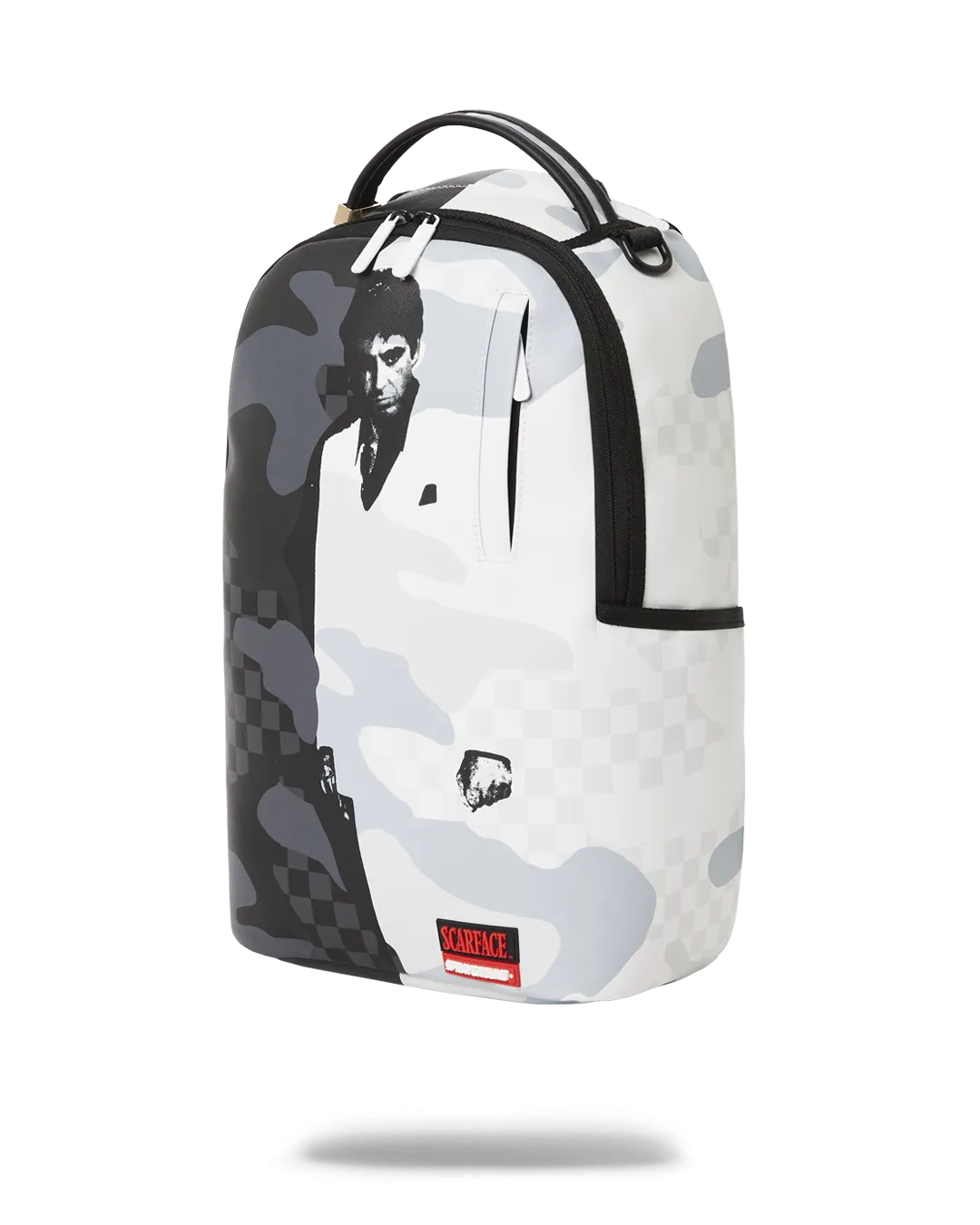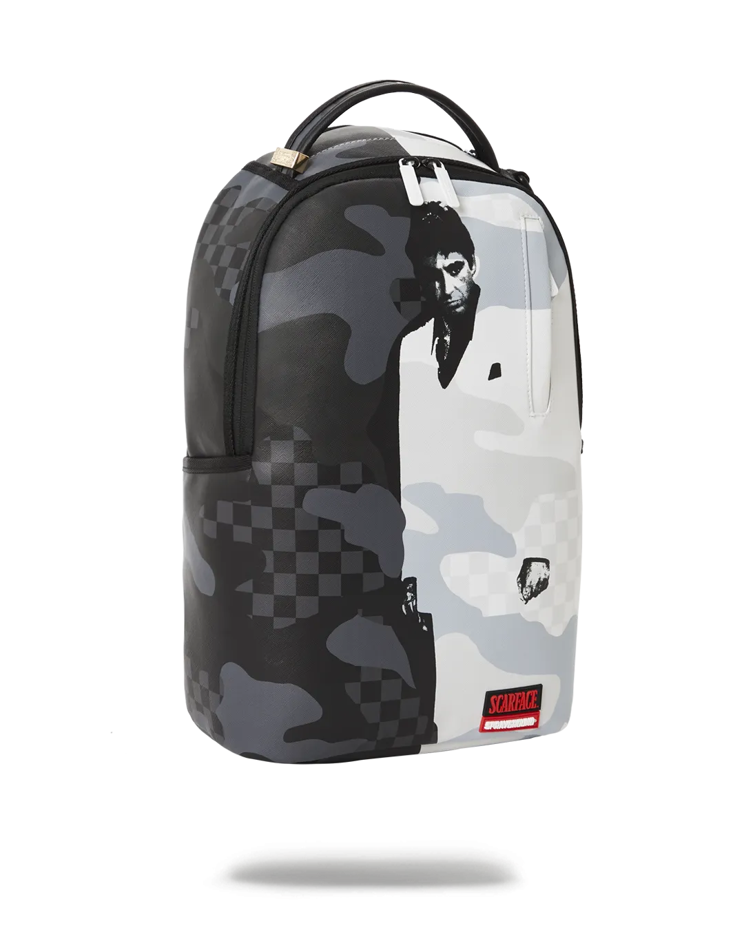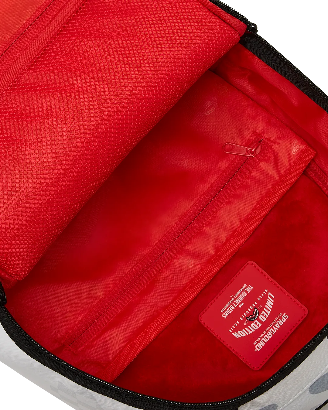 Dimensions: 18″ x 6″ x 11.5″ ? Front zipper pocket ? Side pockets ? Zippered Stash pocket ? Separate velour sunglass compartment ? Ergonomic mesh back padding ? Adjustable Straps for custom sizing ? Gold zippers with metal hardware ? Metal “Sprayground Authentic” badge ? Slide through back sleeve connects to carry-on luggage to free your hands