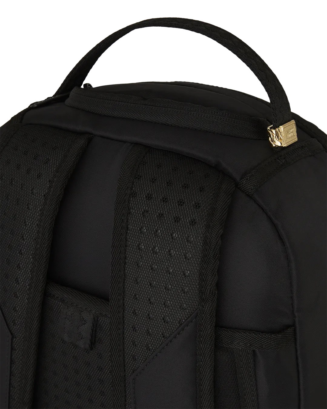 Dimensions: 18″ x 6″ x 11.5″ ? Front zipper pocket ? Side pockets ? Zippered Stash pocket ? Separate velour sunglass compartment ? Ergonomic mesh back padding ? Adjustable Straps for custom sizing ? Gold zippers with metal hardware ? Metal “Sprayground Authentic” badge ? Slide through back sleeve connects to carry-on luggage to free your hands