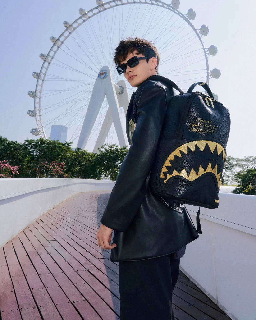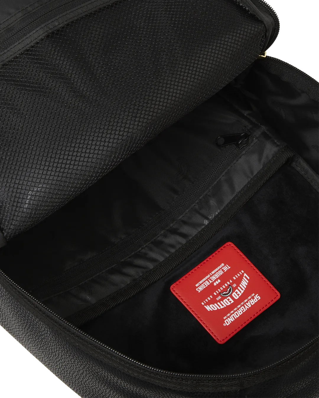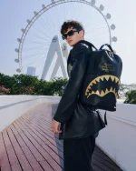 Dimensions: 18″ x 6″ x 11.5″ ? Front zipper pocket ? Side pockets ? Zippered Stash pocket ? Separate velour sunglass compartment ? Ergonomic mesh back padding ? Adjustable Straps for custom sizing ? Gold zippers with metal hardware ? Metal “Sprayground Authentic” badge ? Slide through back sleeve connects to carry-on luggage to free your hands
