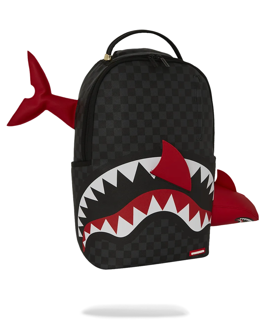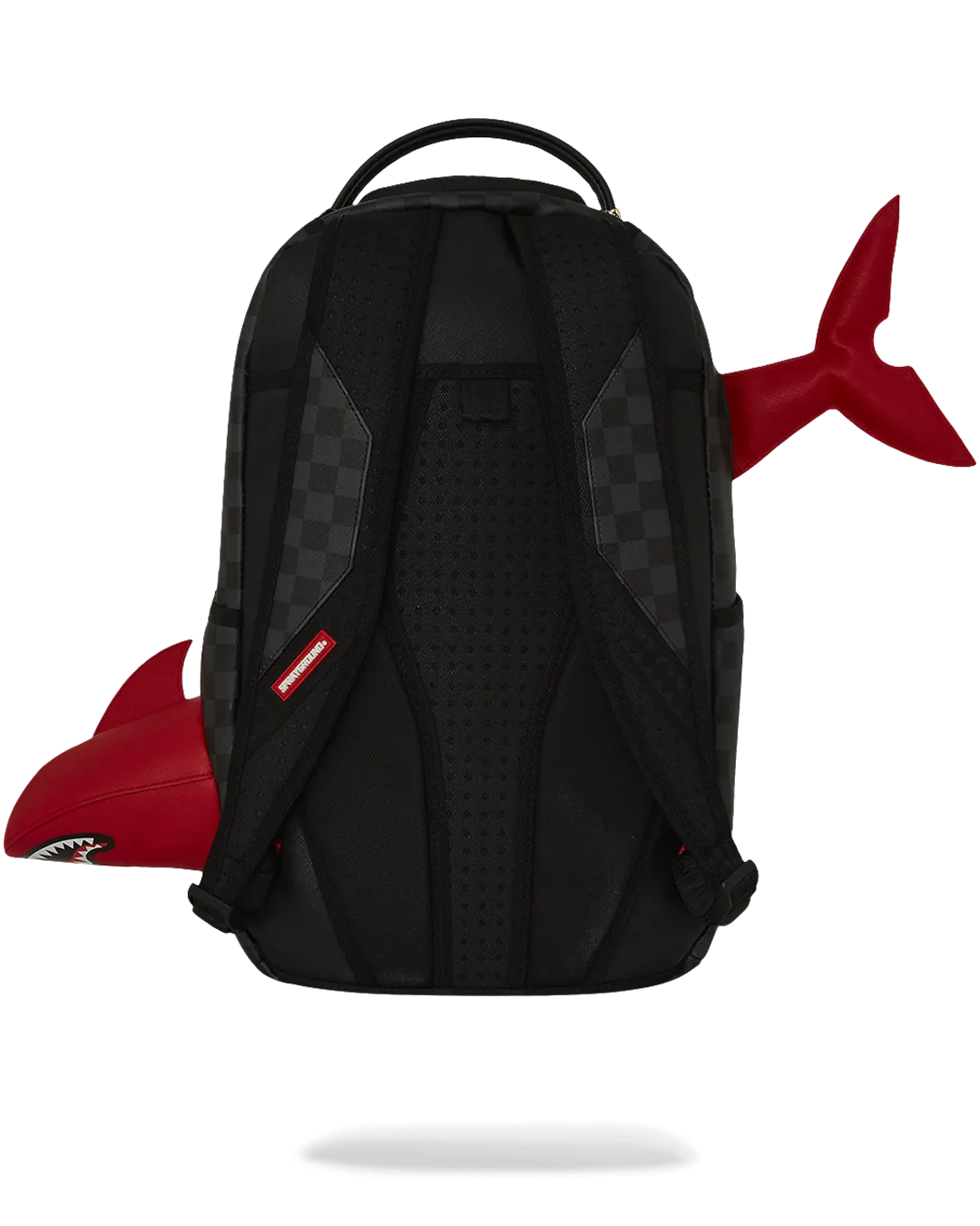 A Vivid Red Shark bursts dynamically from the side of this backpack, crafted in durable, molded 3D plastic that pops with fierce energy. The backpack??s base material is rugged, water-resistant nylon with a smooth finish, providing contrast to the shark??s bold, sculptural texture