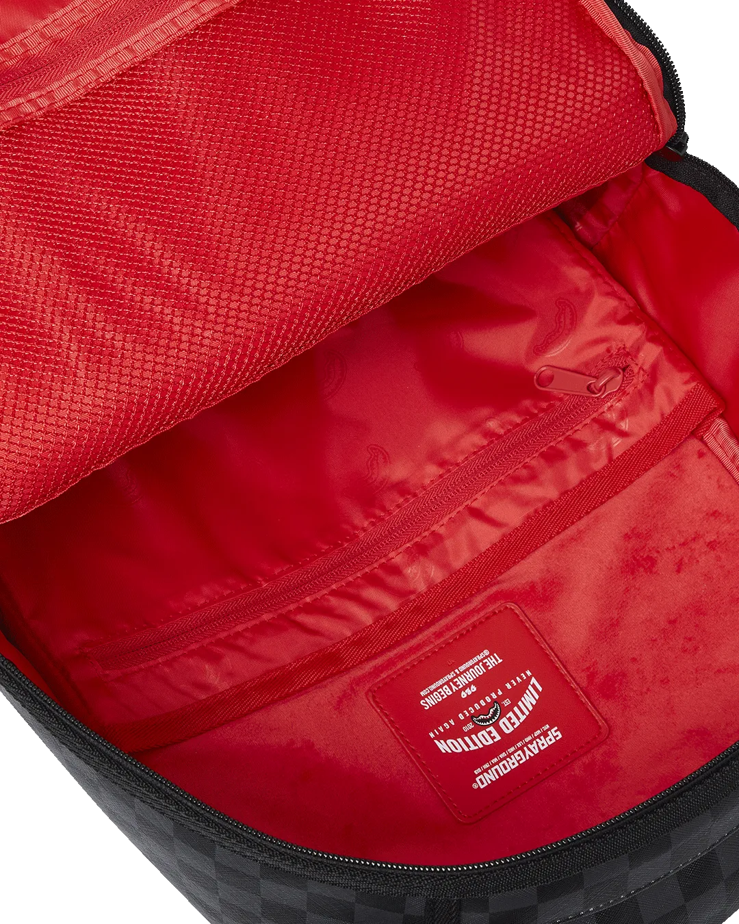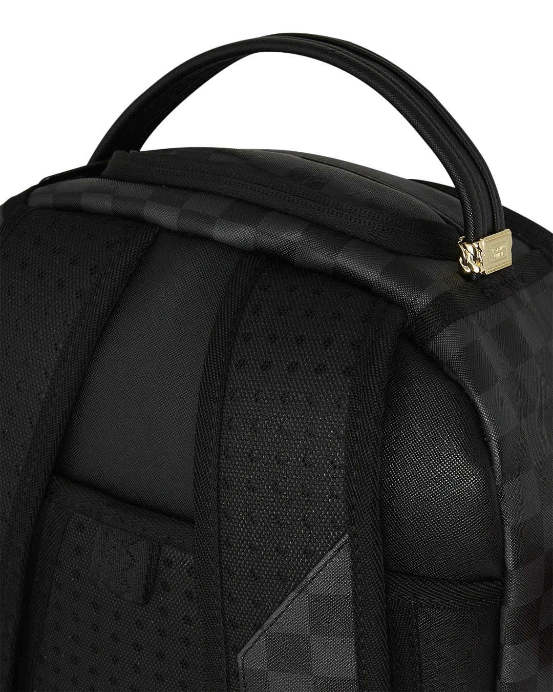Dimensions: 18″ x 8″ x 25″ ? Front zipper pocket ? Side pockets ? Zippered Stash pocket ? Separate velour sunglass compartment ? Ergonomic mesh back padding ? Adjustable Straps for custom sizing ? Gold zippers with metal hardware ? Metal “Sprayground Authentic” badge ? Slide through back sleeve connects to carry-on luggage to free your hands