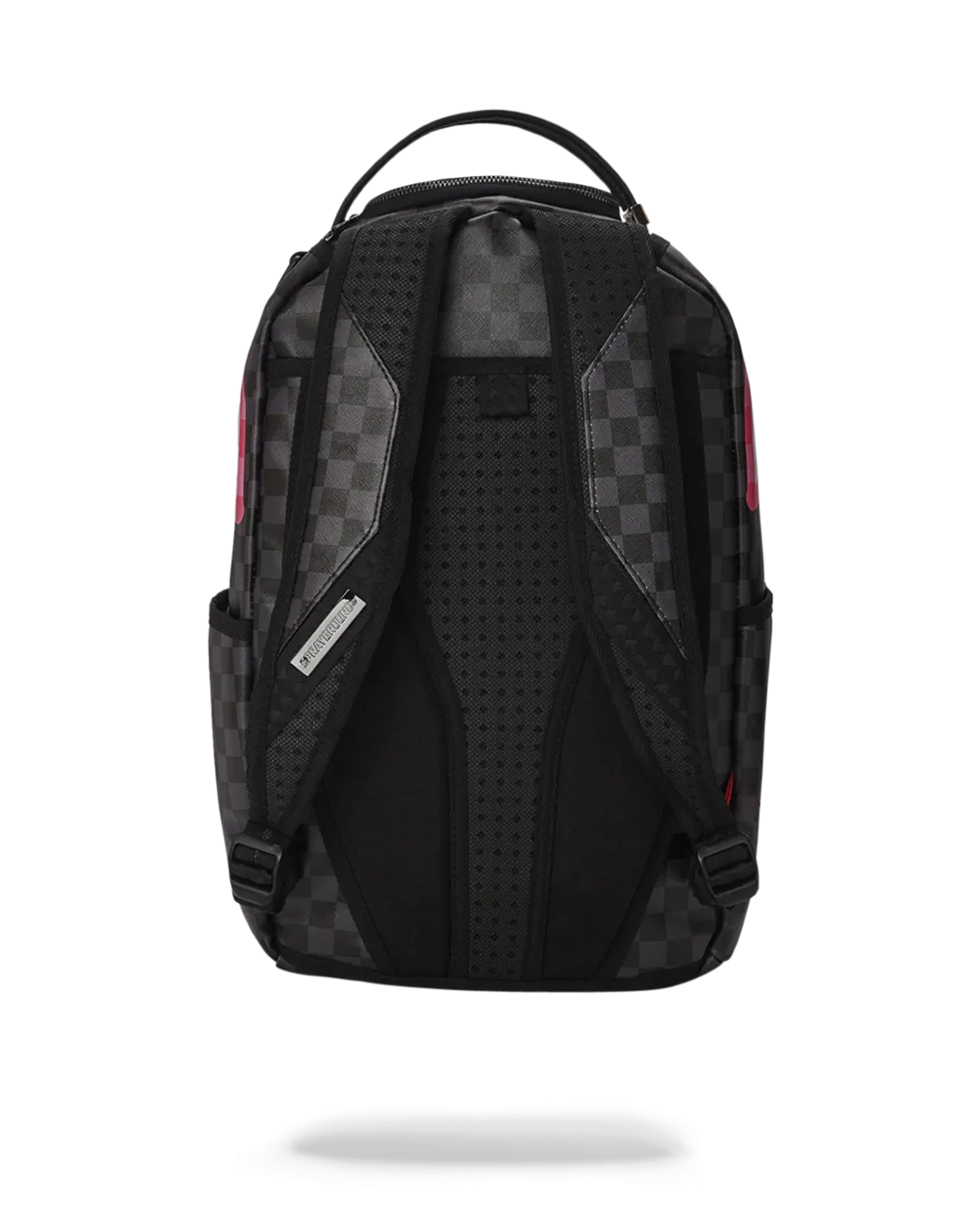 Dimensions: 18″ x 6″ x 11.5″ ? Front zipper pocket ? Side pockets ? Zippered Stash pocket ? Separate velour sunglass compartment ? Ergonomic mesh back padding ? Adjustable Straps for custom sizing ? Gold zippers with metal hardware ? Metal “Sprayground Authentic” badge ? Slide through back sleeve connects to carry-on luggage to free your hands