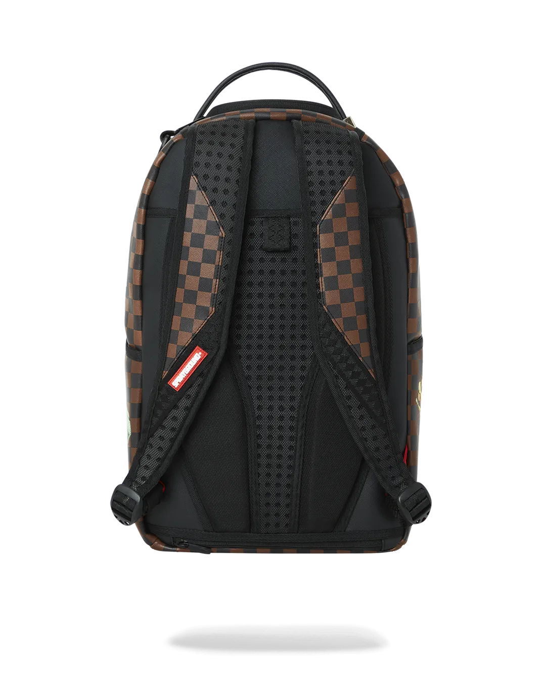 Dimensions: 18″ x 6″ x 11.5″ ? Front zipper pocket ? Side pockets ? Zippered Stash pocket ? Separate velour sunglass compartment ? Ergonomic mesh back padding ? Adjustable Straps for custom sizing ? Gold zippers with metal hardware ? Metal “Sprayground Authentic” badge ? Slide through back sleeve connects to carry-on luggage to free your hands