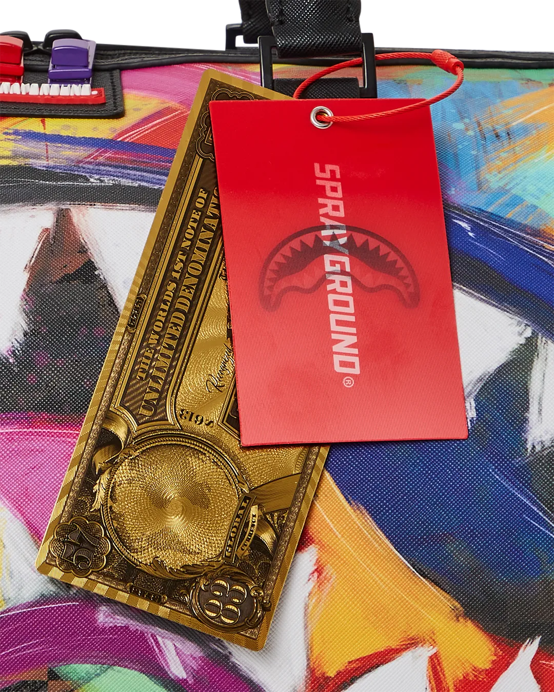 Dimensions: 20″ x 10″ x 10.75″ ? Metal zipper pocket??Back Zippers ?Zippered sneaker pocket ? gold zippers ? Adjustable Straps for custom sizing ?Metal Zippers with Metal Hardware ? bag of Sprayground money