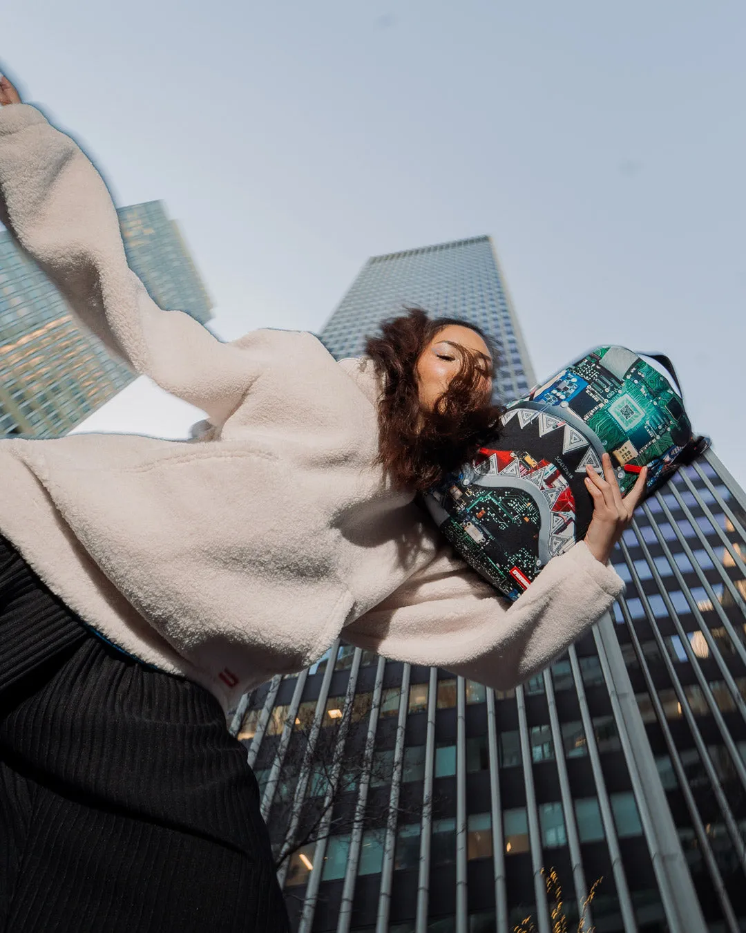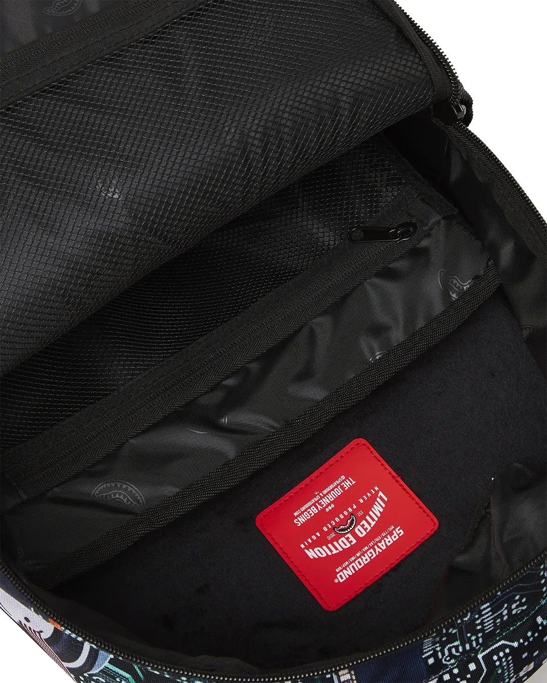 Dimensions: 18″ x 6″ x 11.5″ ? Front zipper pocket ? Side pockets ? Zippered Stash pocket ? Separate velour sunglass compartment ? Ergonomic mesh back padding ? Adjustable Straps for custom sizing ? Gold zippers with metal hardware ? Metal “Sprayground Authentic” badge ? Slide through back sleeve connects to carry-on luggage to free your hands
