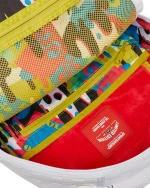 Dimensions: 18″ x 6″ x 11.5″ ? Front zipper pocket ? Side pockets ? Zippered Stash pocket ? Separate velour sunglass compartment ? Ergonomic mesh back padding ? Adjustable Straps for custom sizing ? Gold zippers with metal hardware ? Metal “Sprayground Authentic” badge ? Slide through back sleeve connects to carry-on luggage to free your hands